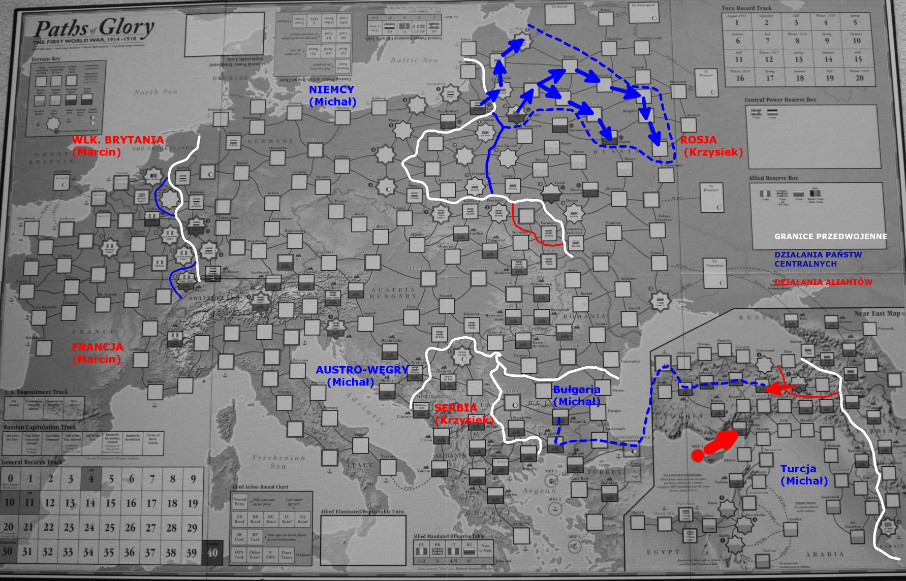 At this moment in time we had to finish as game went well into the night. 5 turns is quite a lot taking into account the experience of Marcin and Krzysztof. What is more, we started events which I did not have possibility to see with guys earlier – like Bulgaria entry or MEF landing. We had so much fun and the situation was getting more and more interesting. We would probably will finish with collapse of Turkey and Russia plus depleted Germans in West. Al could happen then…