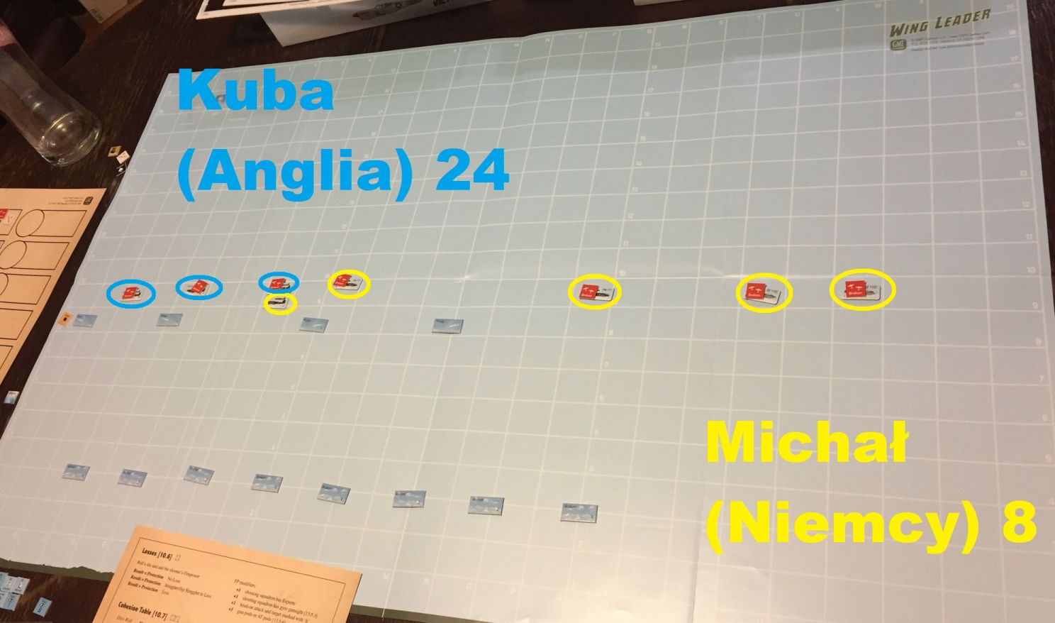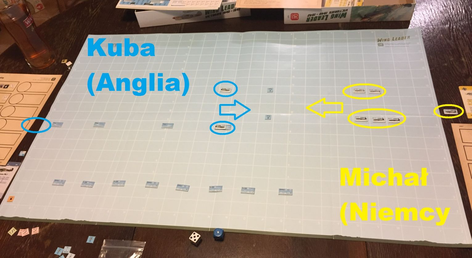 Po rozgrzewce zaczęły się pozycje wagi ciężkiej – najpierw samoloty, gdzie ponownie wylosowałem atakujących Niemców, a Kuba broniących się Anglików. Niestety, moje jednostki były kolejny raz “zielone” vs. weterani Kuby, i mimo w miarę wyrównanej walki do pewnego momentu, musieli ulec: (obrazki po kliknięciu otworzą się w pełnej wielkości):
