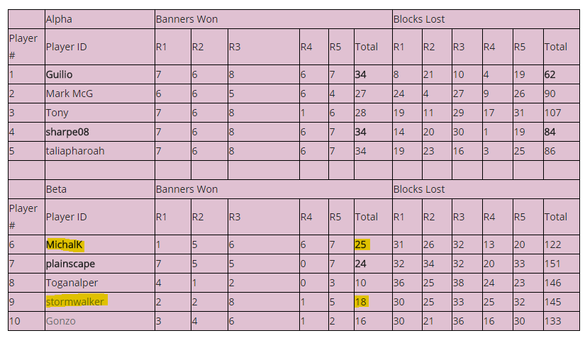 W pierwszej fazie mamy dwie grupy, w każdej po 5 graczy. Rozgrywka polega na tym, że każdy gracz z grupy A gra jeden scenariusz z graczem z grupy B. W ten sposób nawet najbardziej niezbalansowane scenariusze mogą być częścią turnieju – bo porównujemy względne wyniki wszystkich graczy w grupie a nie ma meczy między zawodnikami w danej grupie. Następnie porównujemy wyniki i wyłaniamy po dwie osoby awansujące do półfinałów.