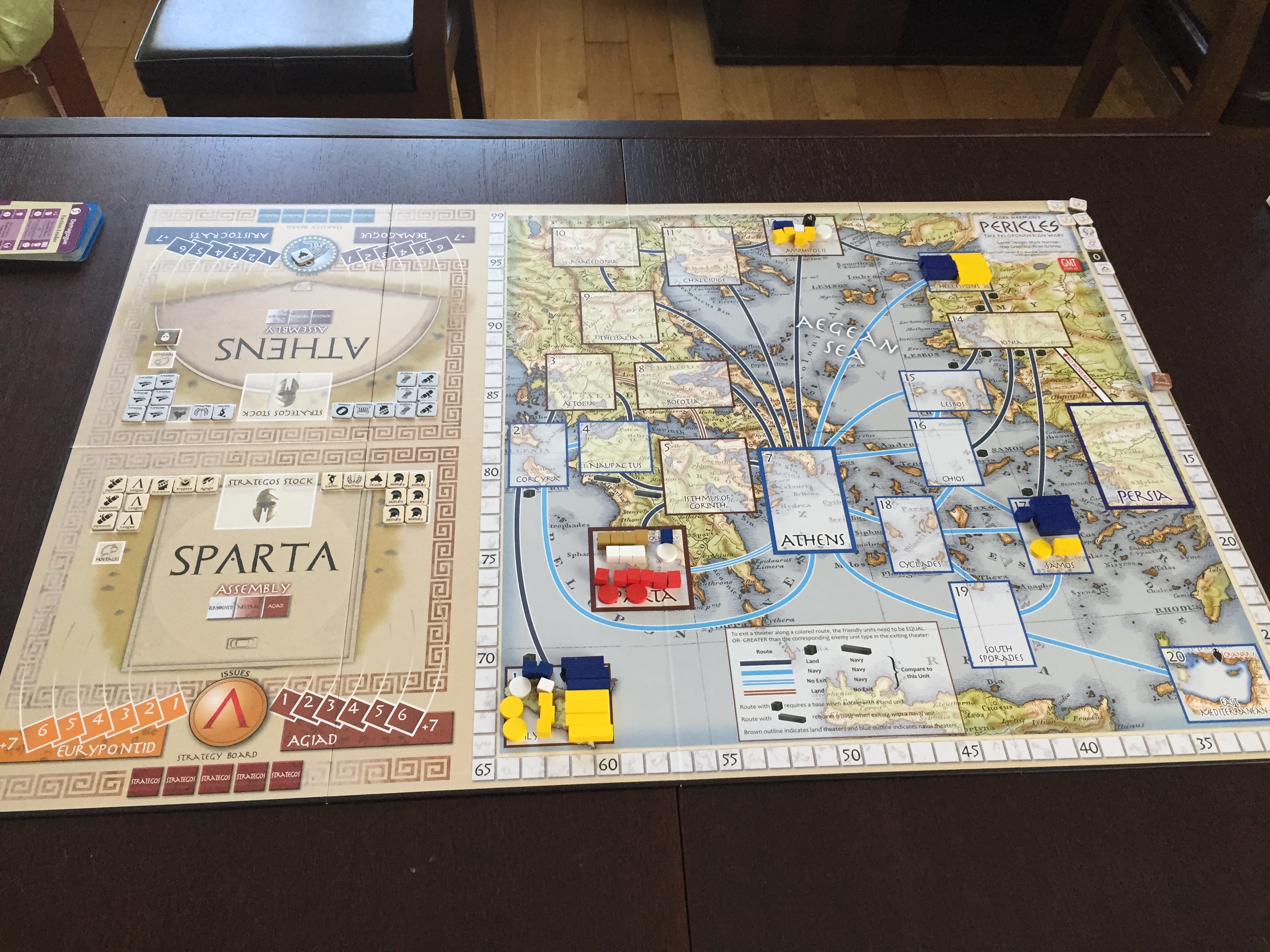 - jest ona na czterech graczy, przy czym podzielonych na dwa obozy: rząd w Sparcie, opozycja w Sparcie, rząd w Atenach i opozycja w Atenach