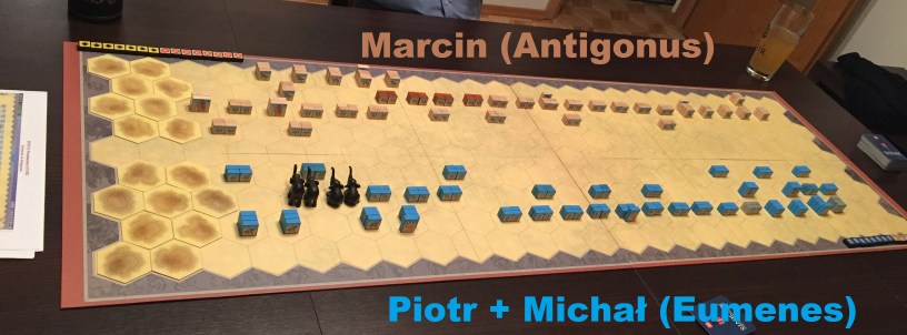 Jako, że spotykaliśmy się w większym gronie, zaskoczeniem nie było, iż zdecydowaliśmy się zagrać w EPICką wersję CCA. Krótka debata przed spotkaniem wyłoniła bardzo wyrównany scenariusz – Paraitacene (317 BC):