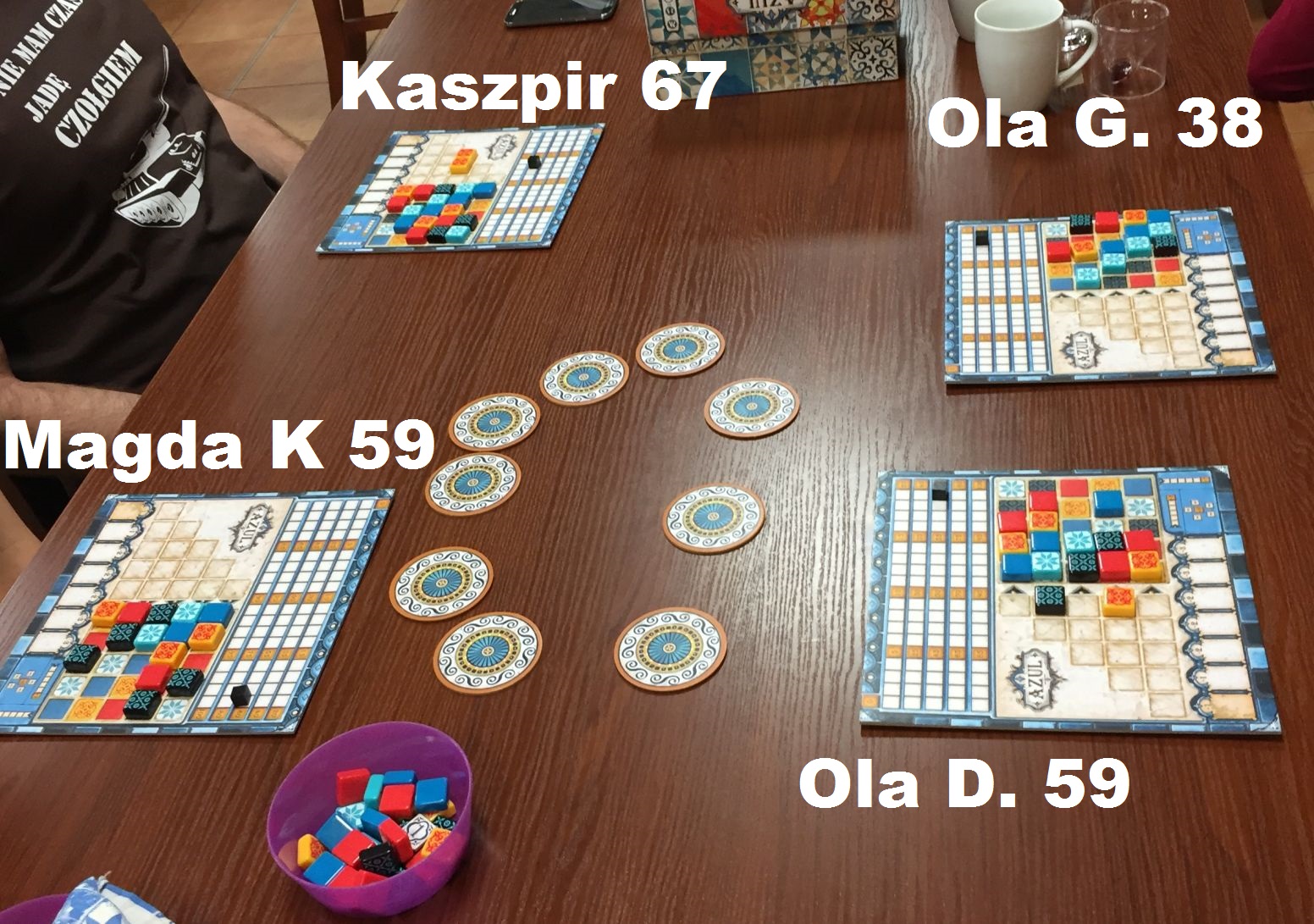 Szybkie płytki i tu zaskoczenie – Kaszpir ewidentnie ma świetny wieczór i wygrywa kolejną grę, nawet tak abstrakcyjną jak Płytki: