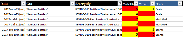 W ten sposób w swoim debiucie zostałem zwycięzcą Mini Turnieju Samurai Battles. Na styk, jednym punktem ale jednak – powyższa tabela jest tego dowodem.