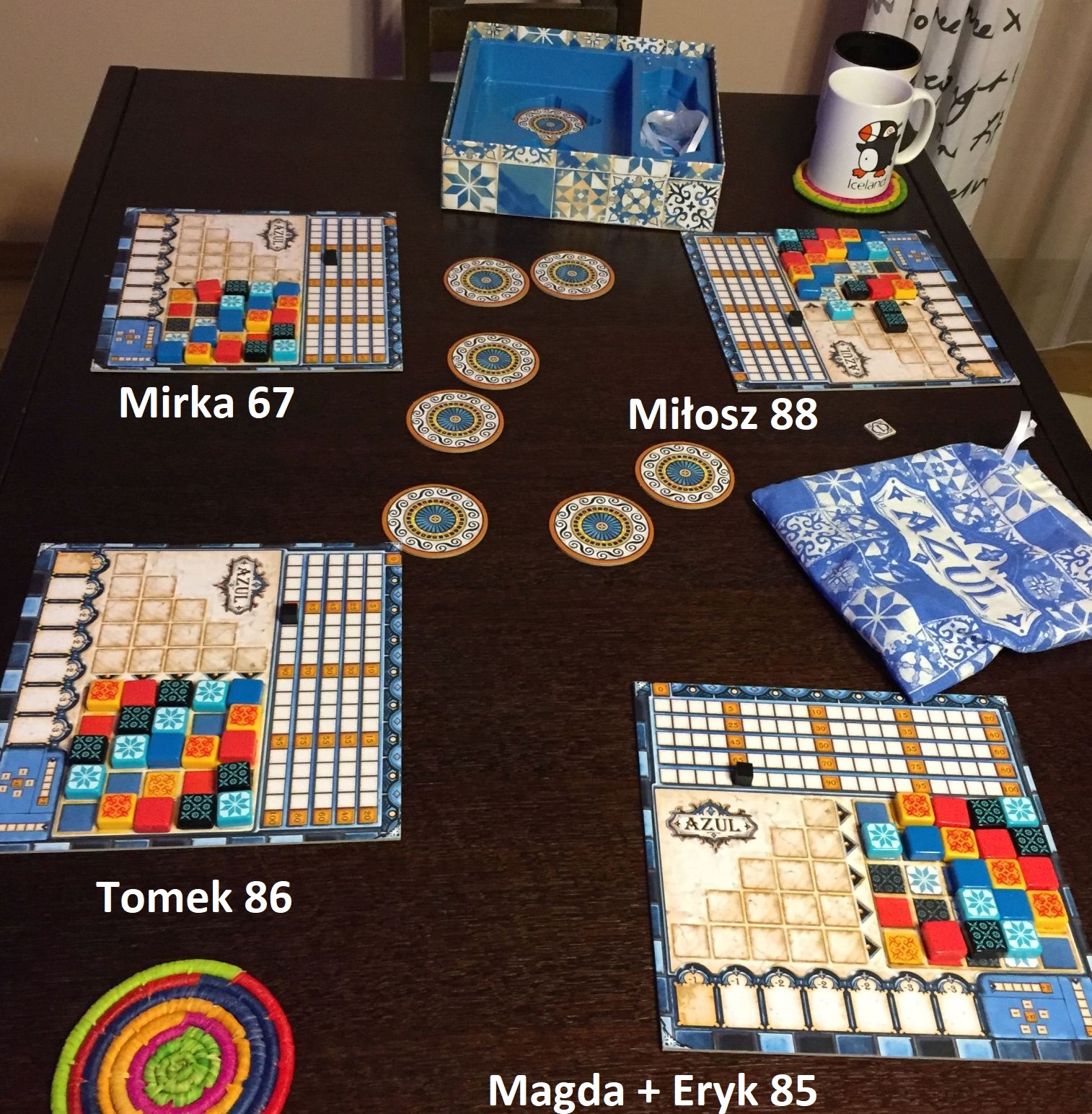 No, nareszcie z powrotem w domu – kolacja czeka, ale zanim do niej dojdzie jest szansa “upchnąć” szybką partię – będzie to Azul, już raz grany z Mirką i Tomkiem podczas spontanicznego Świątecznego Grania.