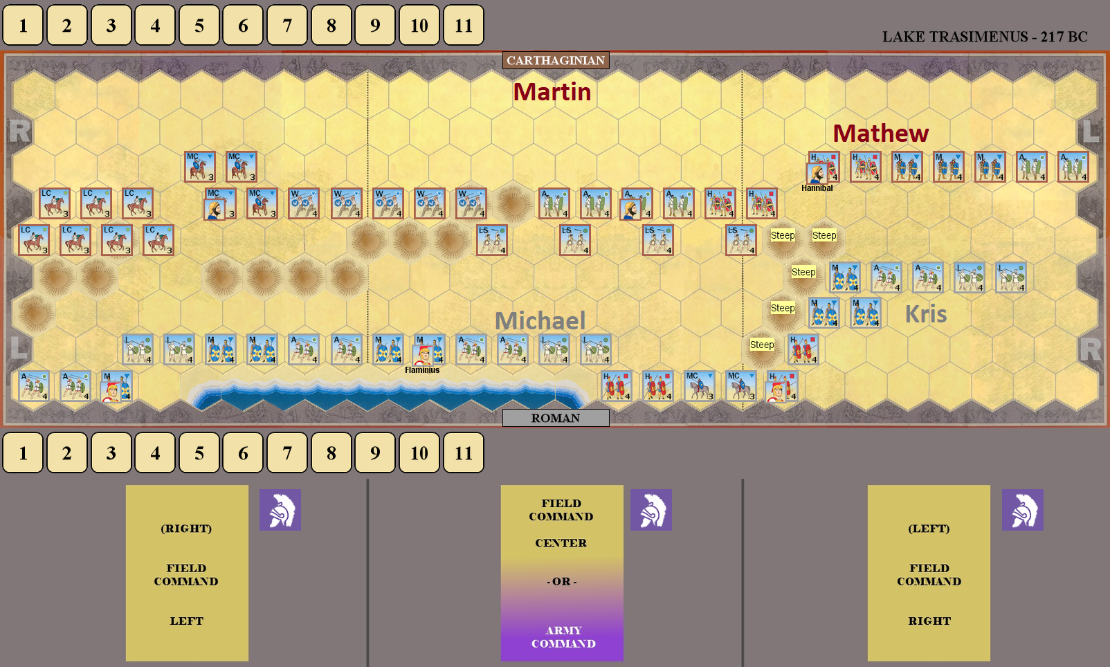 - On Roman right / Carthage left we witness very bloody and bitter fight between Kris and Matthew – truly, lost by Romans only in last turn, but with heavy Punic loses.