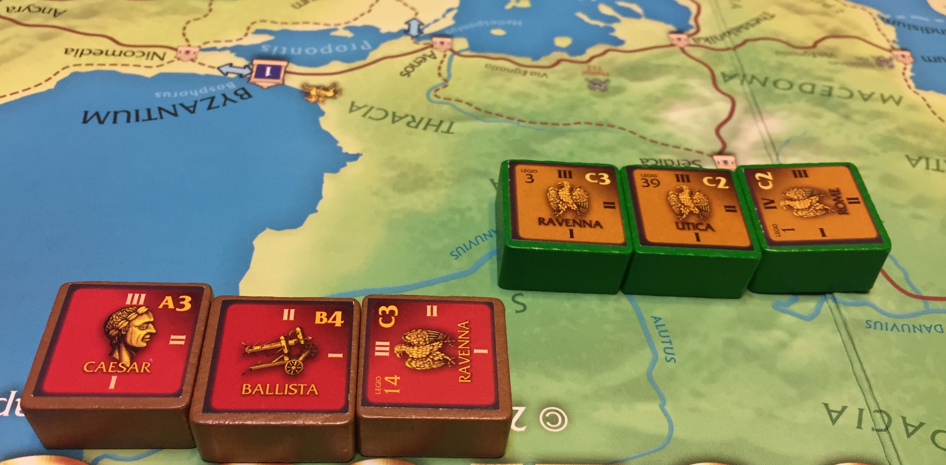 One of the decisive moments of the game – three legions attack Byzantium, but Caesar in time builds the ballistas – all three attackers are being destroyed: