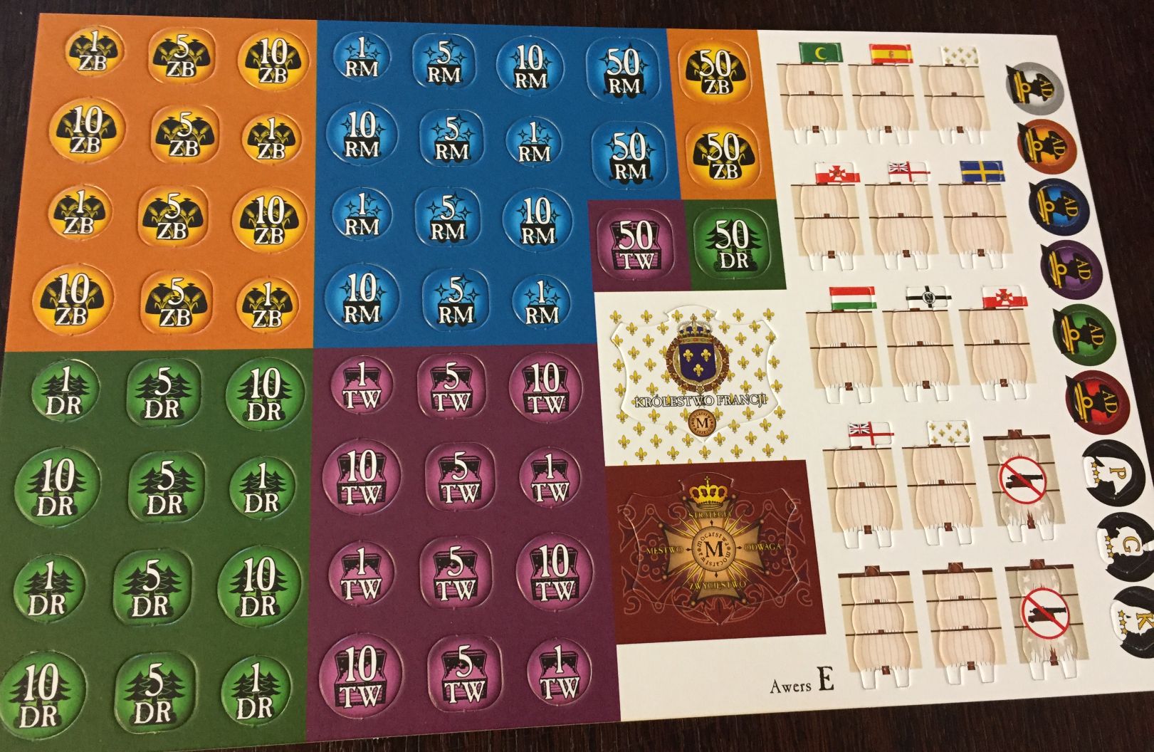 Komponenty jak żetony surowców, pieniądze, znaczniki są bardzo ładnie i kolorowo wykonane. Szczególne wrażenie robią wykonane z drewna okręty i forty.