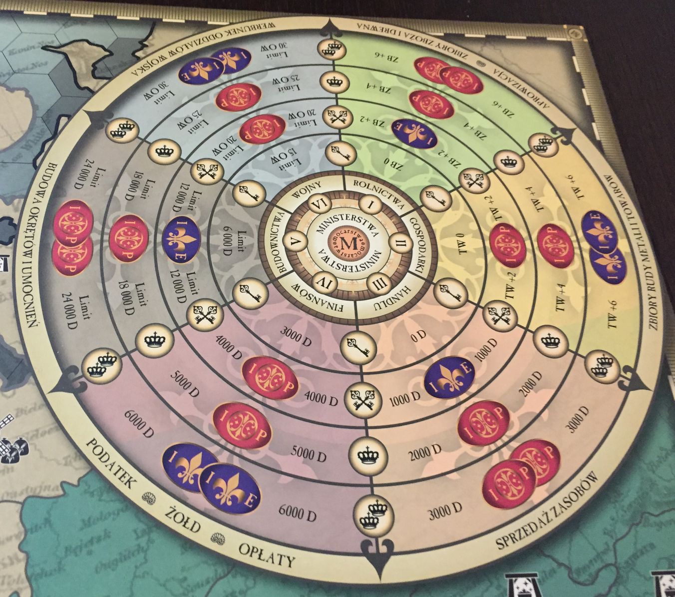 Mocarstwa to gra z typu “rondel games”, tj. planszówek z kołem akcji, gdzie gracze co turę wybierają jaką aktywność chcą wykonać – ale przeskoczenie o więcej niż trzy akcje do przodu powoduje konsekwencje finansowe. Tutaj mamy dodatkowo zróżnicowanie akcji – dana czynności może być mocniejsza lub słabsza, w zależności od rzutu kostką. Aby jednak zminimalizować losowość, mamy limitowaną ilość kart, aby modyfikować rzut.