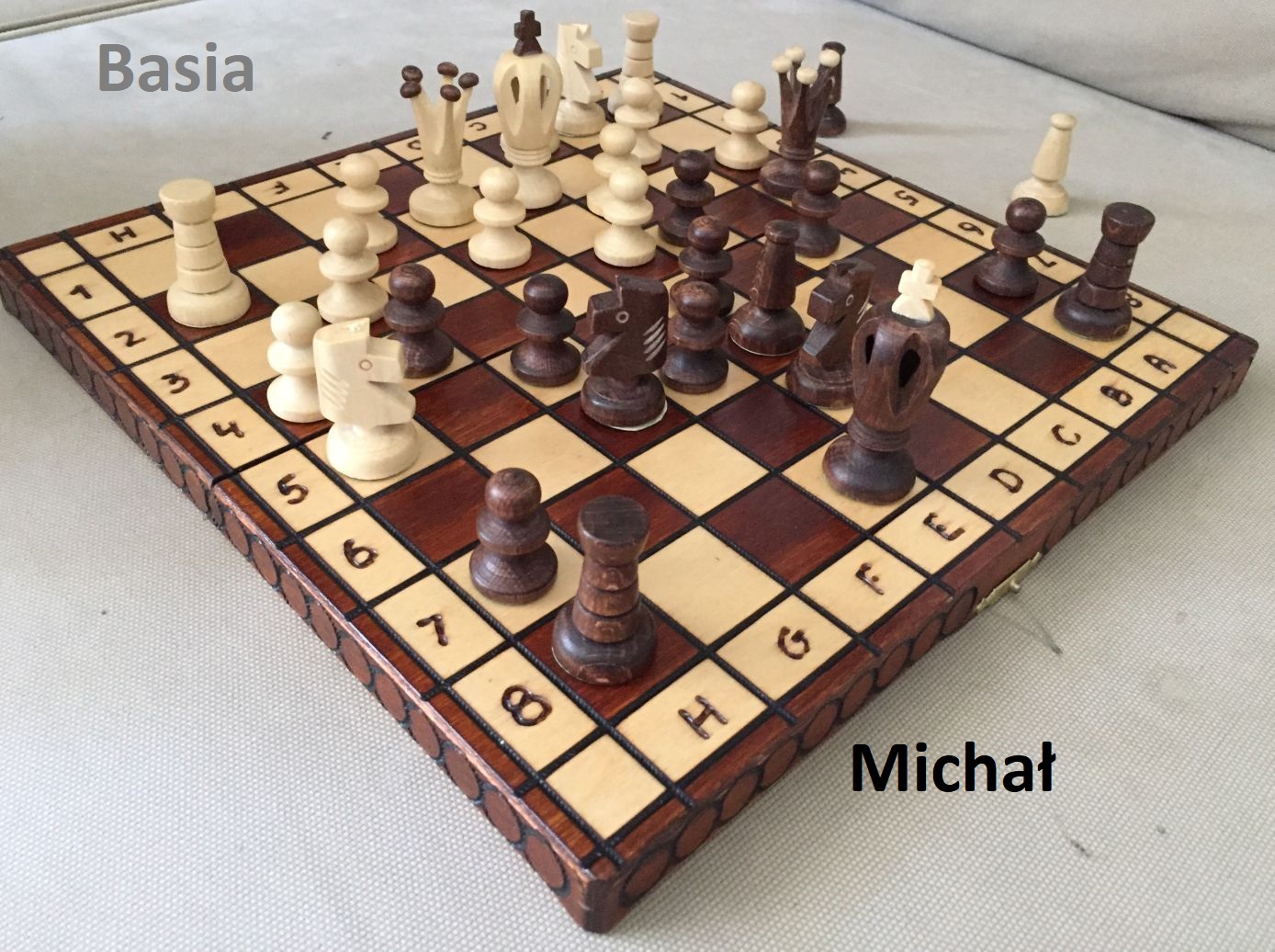 Tak, zarówno Basia jak i Paweł zapałali dużą chęcią do tej królewskiej gry jaką są szachy! Ja już bardzo dawno nie grałem wiec z niekłamaną satysfakcją miałem możliwość poprowadzenia pionów, skoczków czy wież do przodu! Partii dco prawda nie dograliśmy ale było bardzo zabawnie 🙂