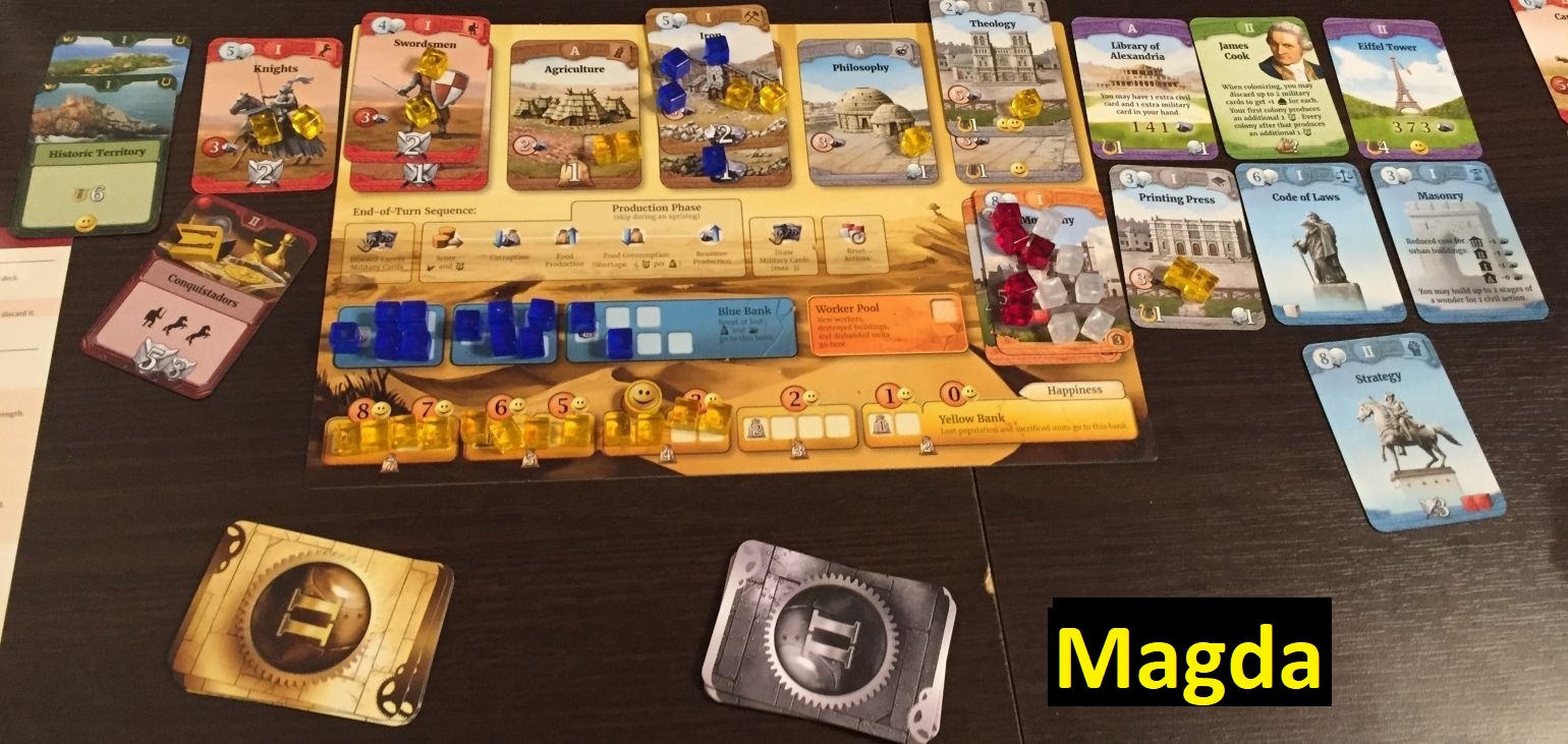 Dzisiaj kolejna relacja z “trudnych gier”, które stopniowo ogrywamy z Marysią i Piotrkiem – tym razem na tapecie ponownie było to Through The Ages (poprzednią partię opisałem tutaj).