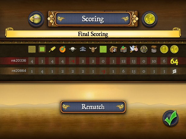 This time the game was not so balanced as I heavily invested into improvements and occupants: