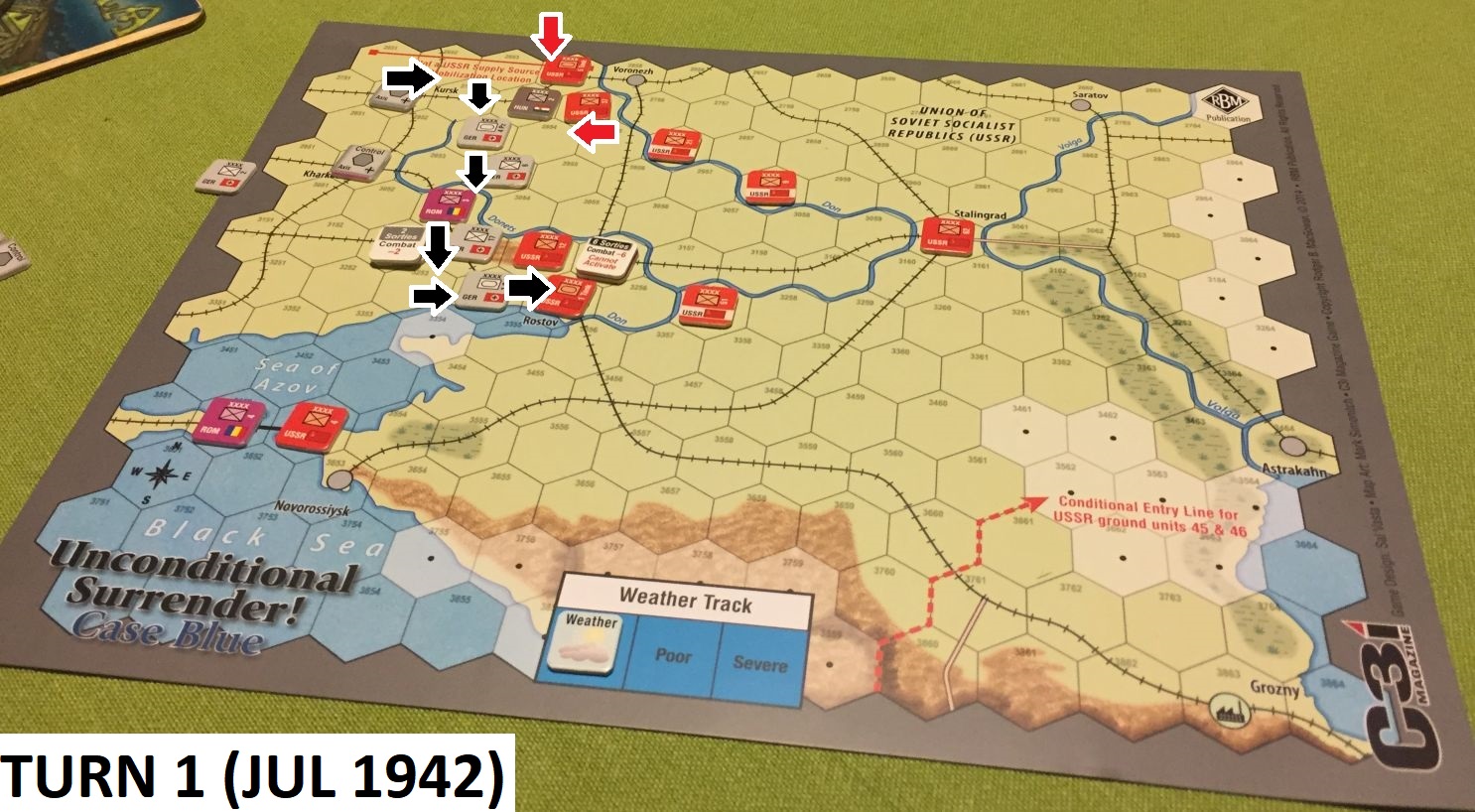 One of the things I like about C3i magazine is that they always include some fully ready to play games. It is even better if such small-format game allows you to test larger positions. This is exactly the situation with Unconditional Surrender: Case Blue!