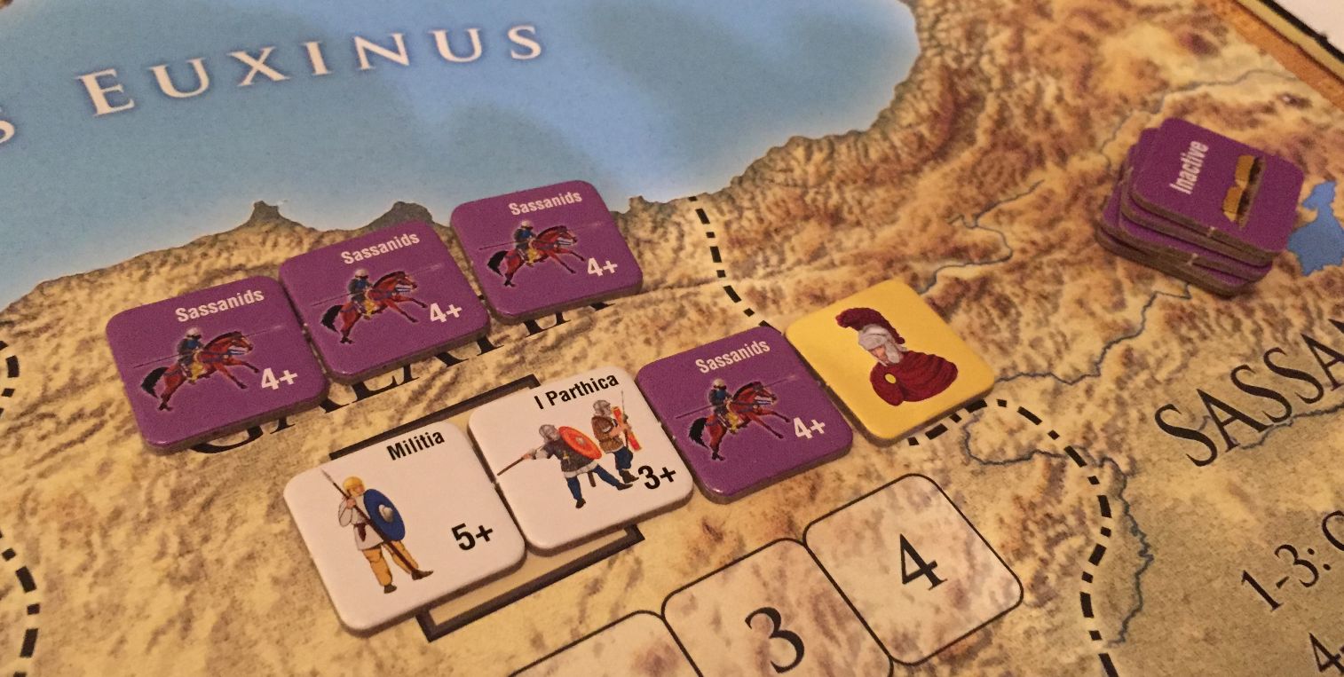 Na stoliku tuż obok w czteroosobowym składzie (ja, Jarek, Marcin i Kuba G) podjęliśmy się Herkulesowego zadania uratowania Imperium Rzymskiego podczas kryzysu 3 wieku AD. Oczywiście, ratując państwo każdy z nas chciał wykroić sobie odpowiedni kawałek a najlepiej – zostać imperatorem!
