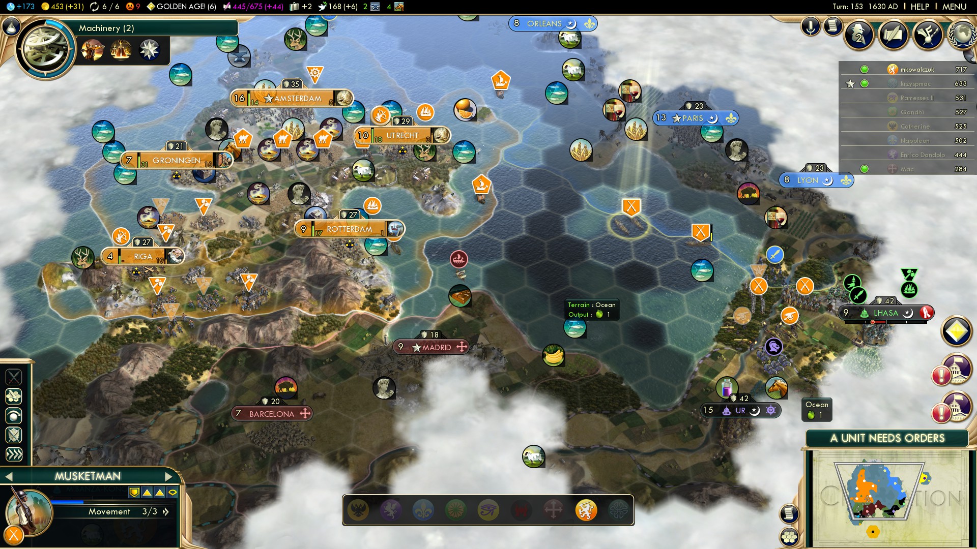 Uff, ile można! Ostatnia konfiguracja nareszcie okazała się trwała i pograliśmy “całe 2 godziny” – mój start jako Holandia: