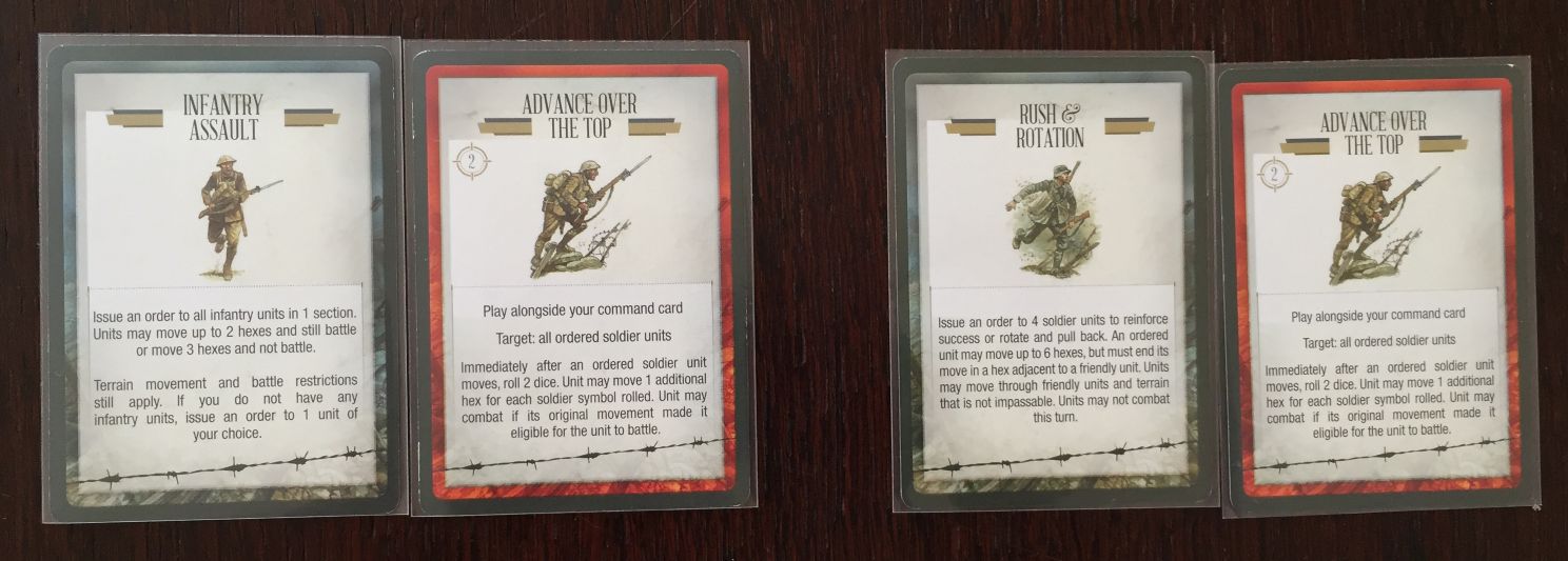 Infantry Assault + Advance over the Top – one of the most difficult things in The Great War is attacking. Really, running through open terrain, with wires and minimal number of shell-holes can be mortally dangerous. Above combo comes with great help in such situation! You can move even up to 5 hexes.