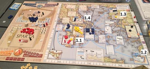 - 1.2 – Athens of course are focused on Persian war, which they manage to conclude.