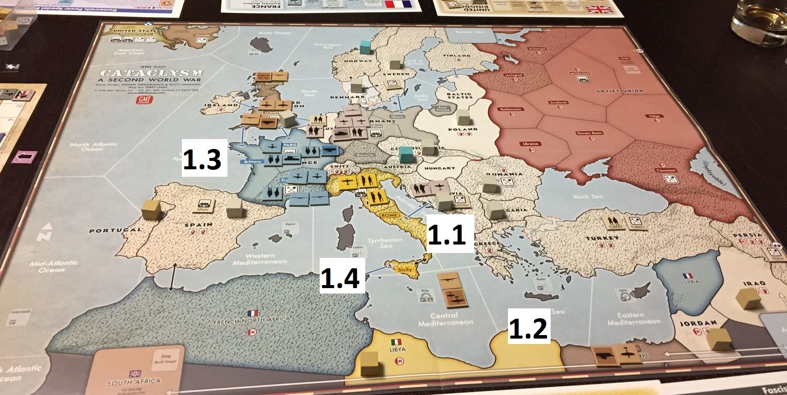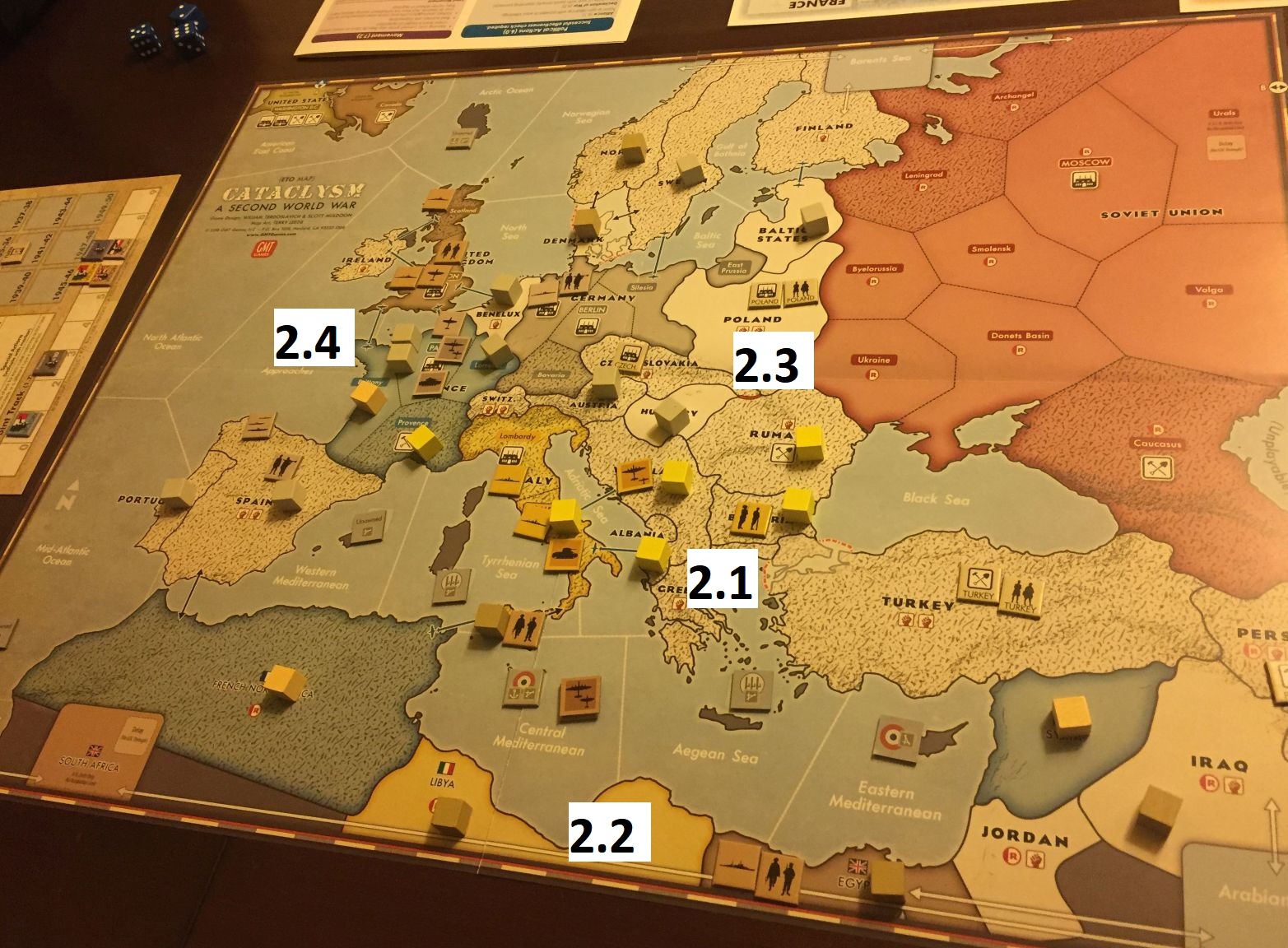 2.1 – in that game again, the Italians attacked Balkans but managed not to collapse and kept their cubes.