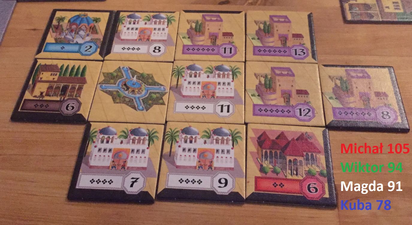 O wyniku w dużej mierze decydował mur, za który można dostać naprawdę dużo punktów. Miałem też szczęście, kontrolować najbardziej punktowane budynki. Coś czuję, że jeszcze nie raz zagramy w Alhambrę.