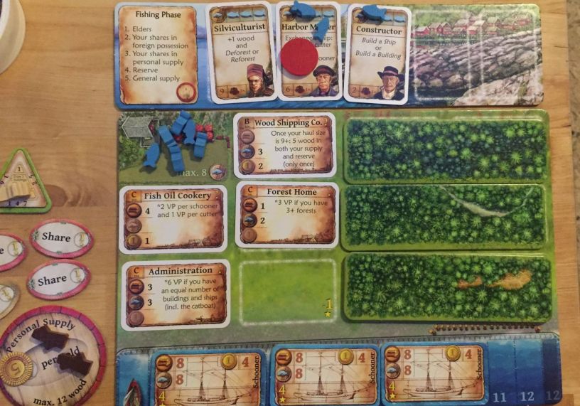 Kuba to duży fan Uwe Rosenberga i gdy zobaczył, że mamy jego gre o przedsębiorstwie rybackim (Nusfjord) to z duża chęcią z nami zagrął. Oczywiście, była to partia wstępna – jednak aby dobrze grac w ta pozycję trzeba trochę poznać budynków.