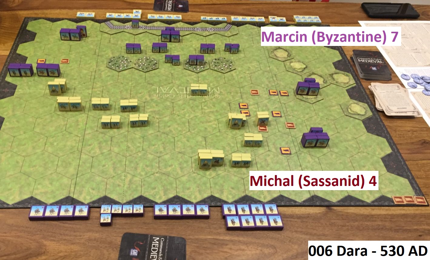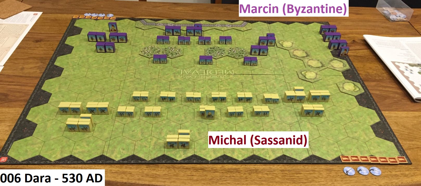 In my opinion Dara should be played by more experienced CCM players, not as an introductory scenario. It has some interesting mechanics, asymmetric set-up, important special rule about hidden cavalry and requires players to know strengths and weaknesses of their units before committing them. Also, for the first time we used city walls as well as storming gates rules. Similar challenges will await us in the next episode of the Belisarius Campaign – soon to be published!