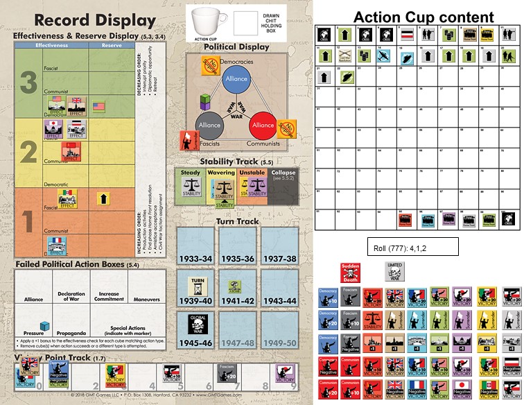 The usual method for such play, even via email, is to use Vassal modules. However, thanks to Peter (BGG profile) I had a rare opportunity to try the game using the google presentation. That was really well prepared, easy to use and intuitive method. See here – should still work (if not, below you can find screenshots). A for the gameplay, we did the rolls through the BGG thread, reflecting all the moves in the google presentation. We have even solved issue of action cup by placing all the issues in the matrix and just rolling the dice to see which was drawn.