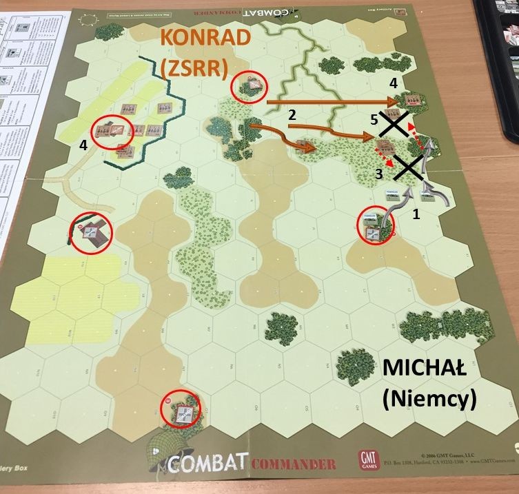 5. …and I managed to lure them for melee fight, where my Germans dispatched two Soviet squads! Unfortunately, Konrad’s counter-attack (in melee) killed all my units… We re-rolled multiple times, switching the initiative but in the end I had to accept defeat.