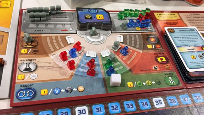 Tradycyjnie na naszym wyjeździe grana była Terraformacja Marsa. Prym wiodła Ola z Filipem, a dołączyła do gry również Agnieszka (kliknij by otworzyć w nowym oknie)W ramach rozgrywki została użyta cała masa rozszerzeń, z Parlamentem Marsjańskim włącznie! Ostateczne wyniki to: Filip 100, Ola 97, Aga 69 (kliknij by otworzyć w nowym oknie)