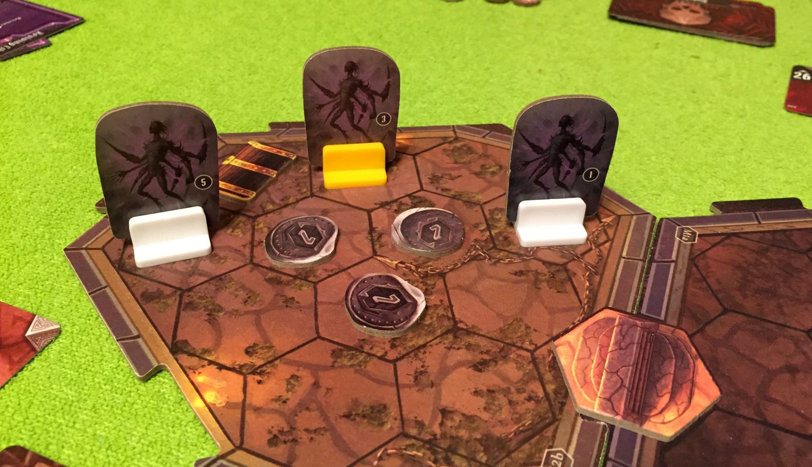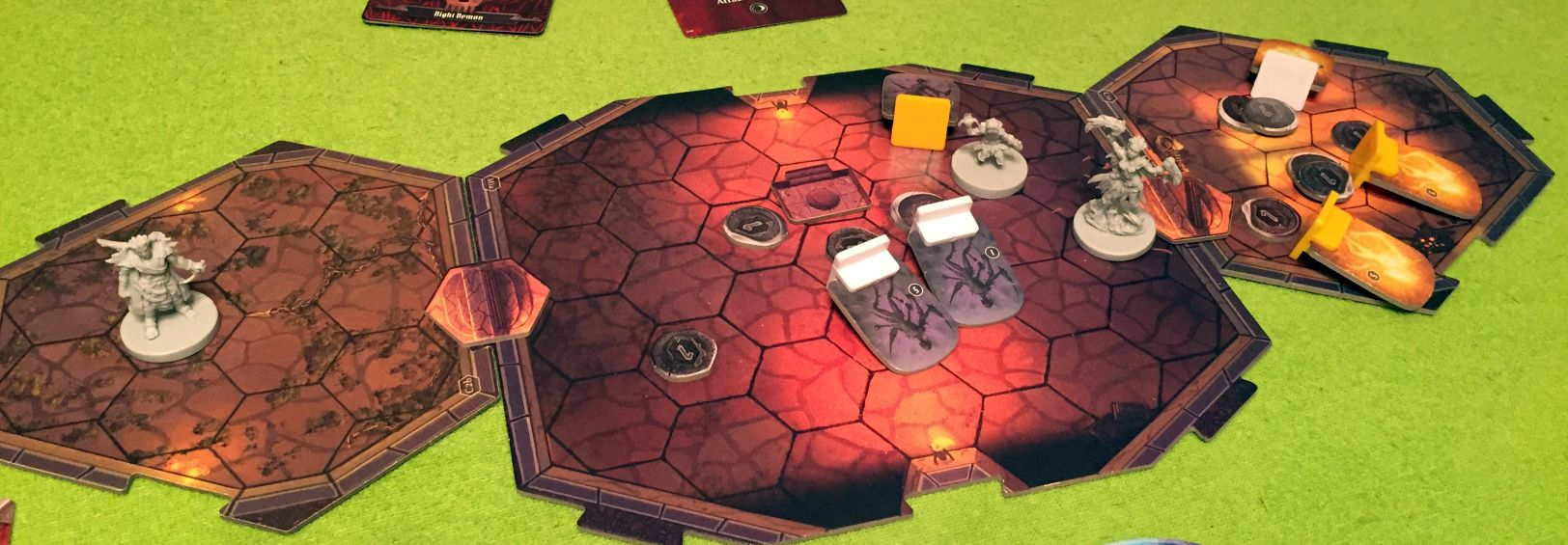 My Spellweaver’s new ability from lvl 9 is bit overpowered even if not utilized in the most efficient way . With it after 2 turns most of creatures in room 2 got killed (Michal was quicker and took first 4? kills for him, but even if he didn’t bit later i could finish most of those 4 by myself) , and in the 3rd round we cleared the room. I thought we would clean rooms slowly, one after another, but guys moved closer to left (night demons as it appeared in 4th round) and as i could do some harm only in the right room i decided to go there . Guys were screaming, no, we don’t want to loose again and repeat scenario for the 4th time, but i ignored their whining 😉 I’ve said i’m lvl 9 and i can handle it by myself and entered room . I hit Sun demons hard and cloaked to prepare for another round of combat, guys opened left room and saw slow Night Demons so they took few steps back, helped me with he Suns(more difficult opponent than the ND), and allowed Night demons to get near us .At the end we had to limit us a bit so Michal could get to the treasure 😉 My Inferno is sick, even if Cultists managed to summon Bones, game wouldn’t change much, only instead 71 damage in round one there would be some 100(most by my Spellweaver) and maybe even my huge modifier deck would ran out of cards, so i would have shuffle it while doing one attack action 😉