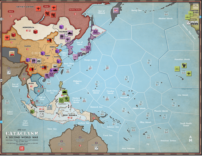 The initial map is pretty empty, with few armies and some important markers (like demilitarized Ruhr, Status Quo, Japan trade Marker, US-Japan treaty) which inhibits too fast expansion. But as we will see – and as it historically was – that will not prevent the ideologies to clash.