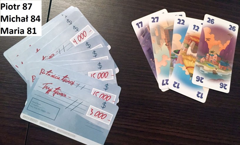 Przy kolejnym spotkaniu zajęliśmy się handlem nieruchomościami i ich licytacją. Oj było gorąco a ostateczne wyniki bardzo bliskie. Po wynikach widać, kto pracuje w finansach 🙂