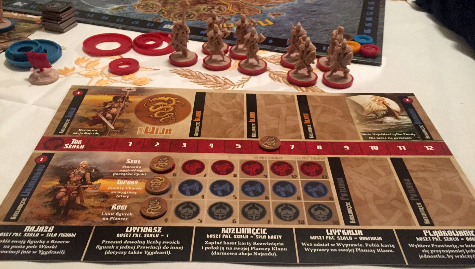 Blood Rage proved to be a very good and successful re-implementation of Midgard game. The mechanics are straightforward, battles quick and effective, the replayability of the game quite high and the quality of the miniatures very satisfactory. I especially like the mechanics where even fallen troops can bring you glory and points! We spent very exciting evening and will for sure come back in the future to that title!