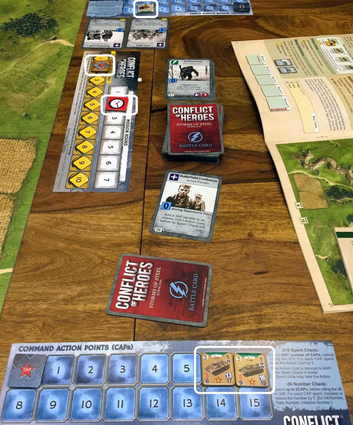 Another week and another exciting scenario played with Conflict of Heroes: Storms of Steel 3rd edition. After the first four, infantry-based scenarios we decided to jump to the skirmish number #7 Wounded Tiger featuring tanks! And what tanks they were – the mighty Tiger is a key unit here, immobilized due to the engine failure, waiting to be rescued by Panzer III and IV deployment. But a pack of T70 and T34 are ready to quickly strike and destroy it before help can arrive.