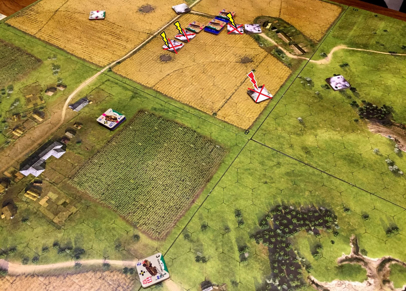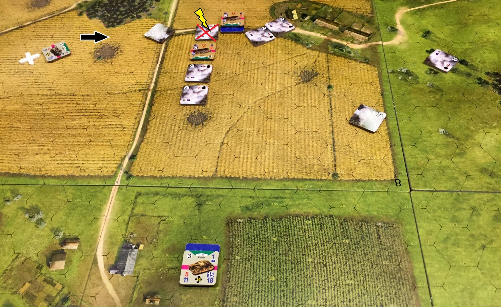 The Kursk battle rages on. On day 3 of the German offensive, III Panzer Corps blasted a narrow corridor a few kilometers wide through the Soviet defensive lines. The battlefield at Kursk was littered with tanks – abandoned due to mechanical problems rather than combat – which both sides attempted to retrieve and repair. As the German spearhead advanced, an immobilized Tiger is left behind in a field. Through the unsecured flanks, a platoon of T-34s and T-70s slips back to finish off the ‘helpless’ Tiger.