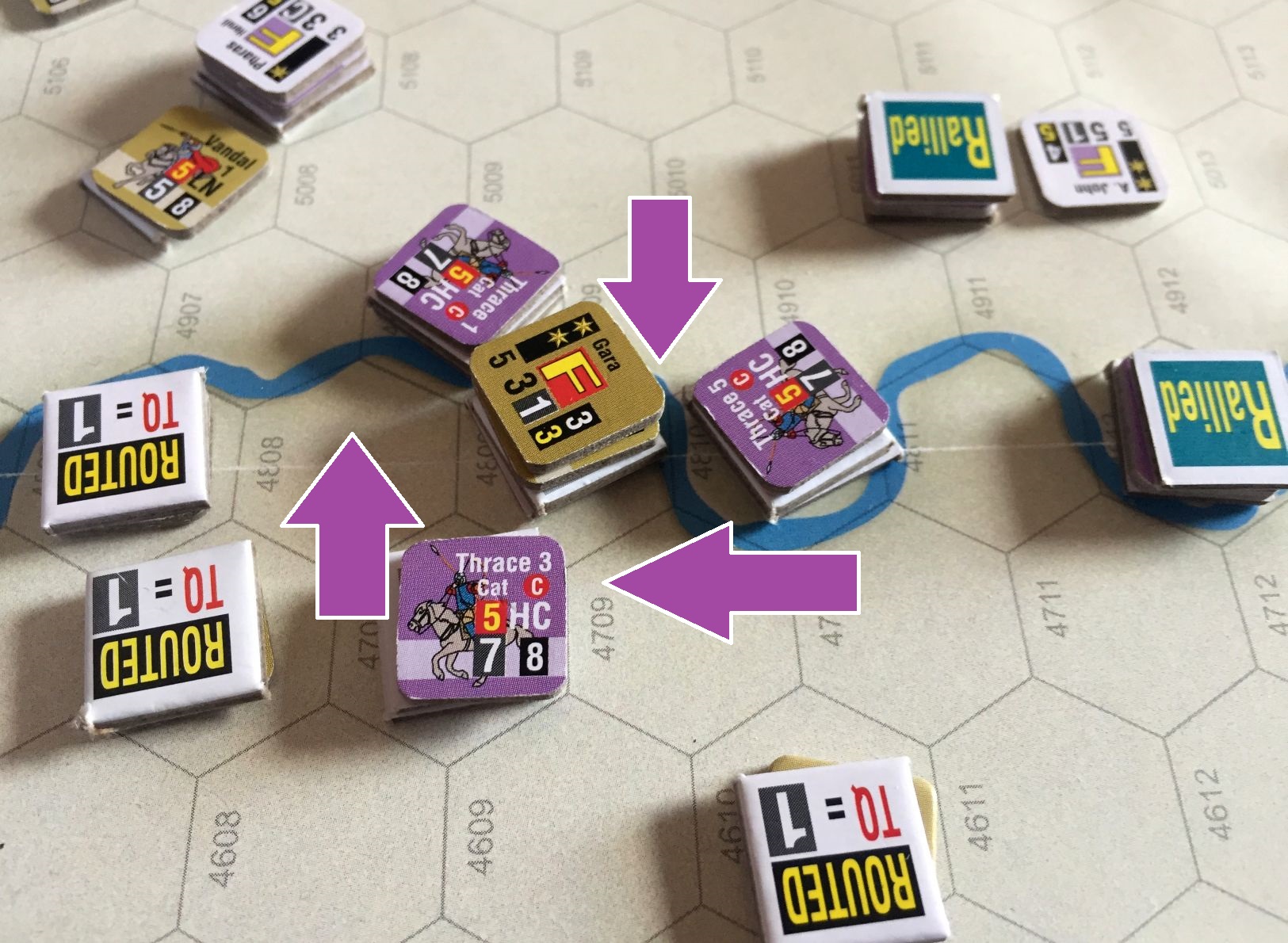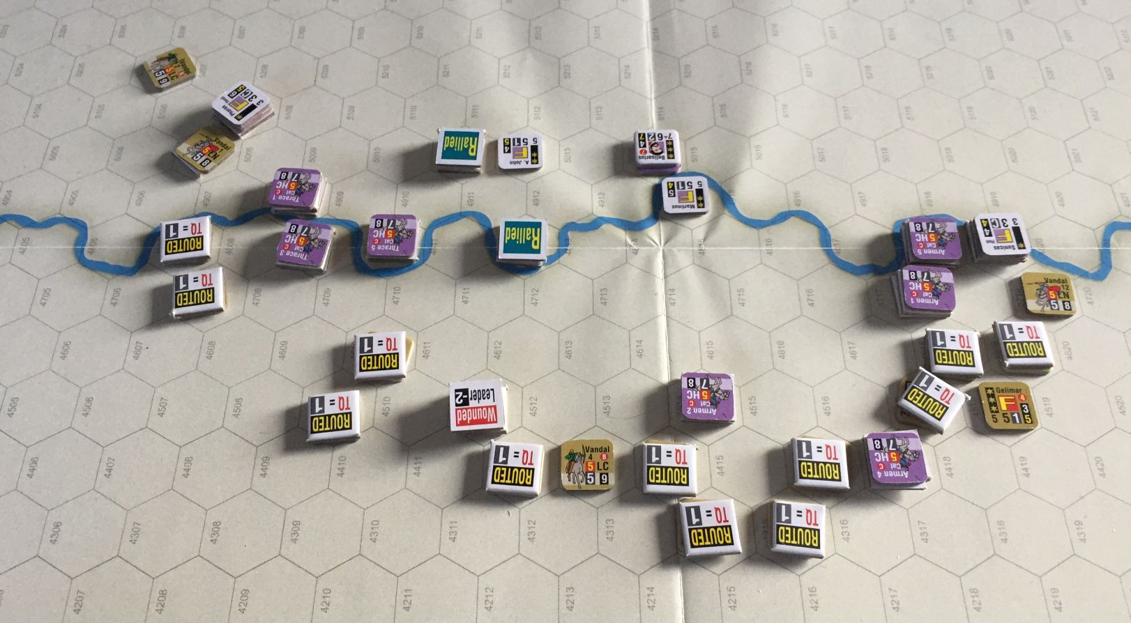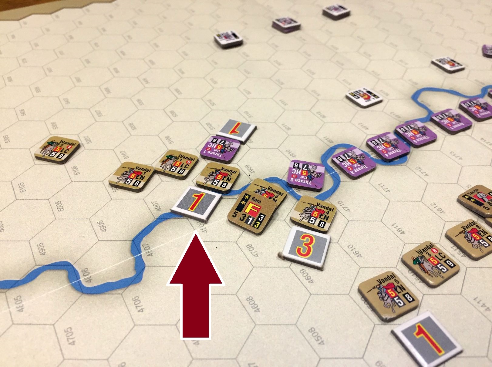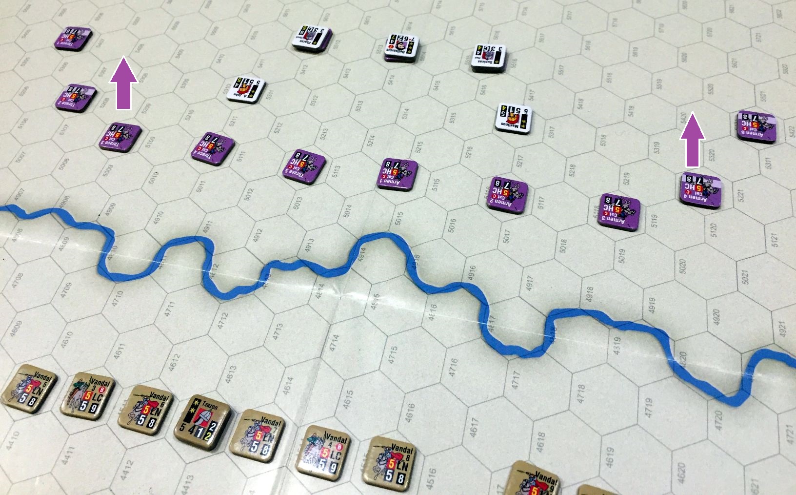 The main Byzantine push was in the center where almost all units – save one LC unit, which can withdraw – were routed. In that phase 10 Vandals and 2 Romans started to flee.