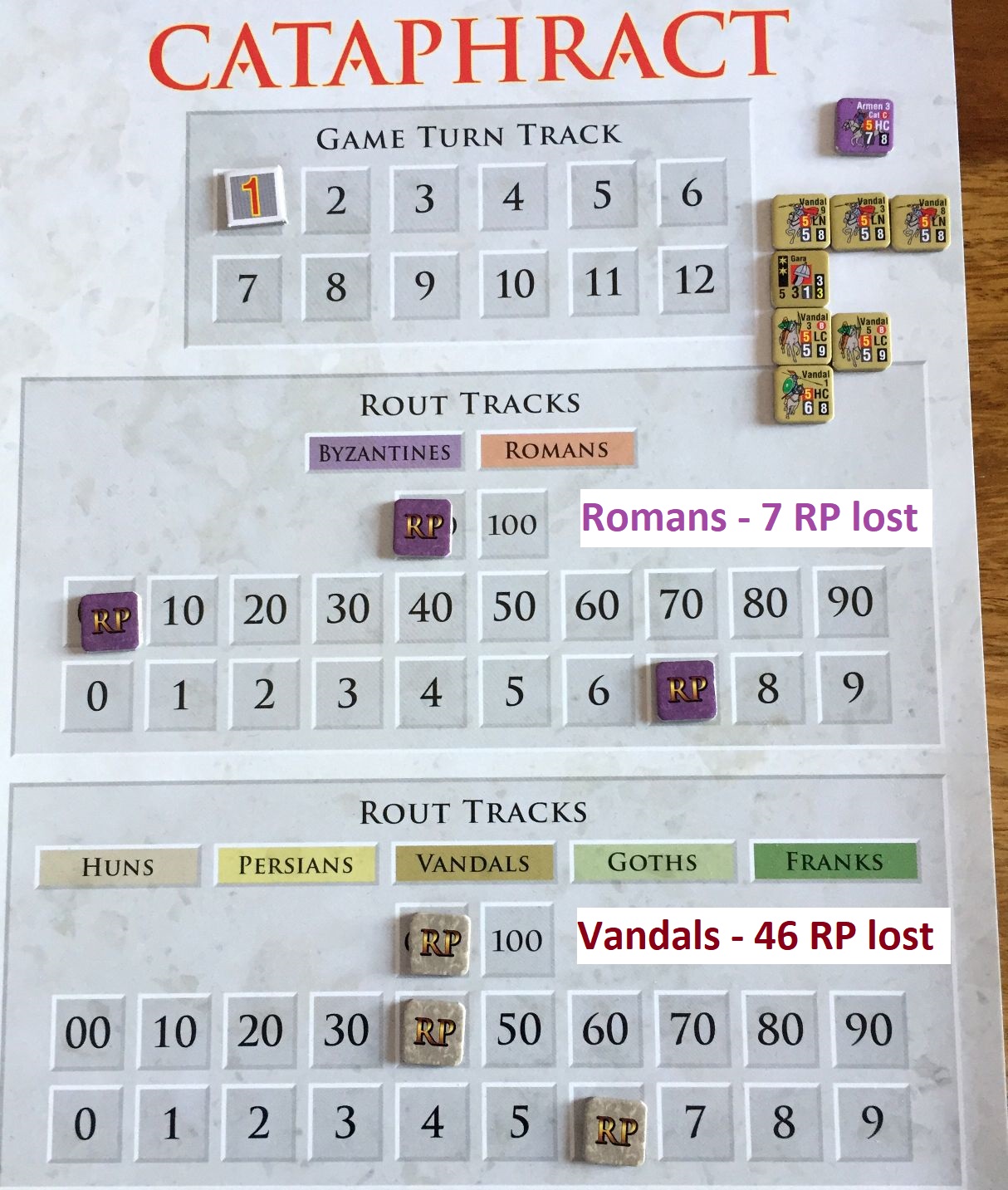 Having nothing to lose, Vandals now concentrated in the center (one Cataphract routed) and on their right wing.
