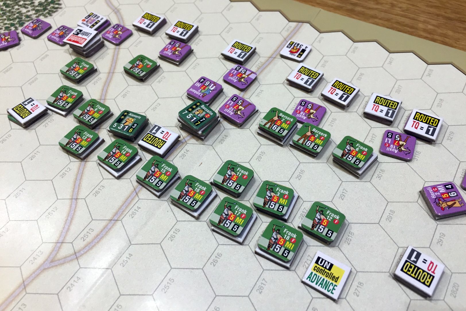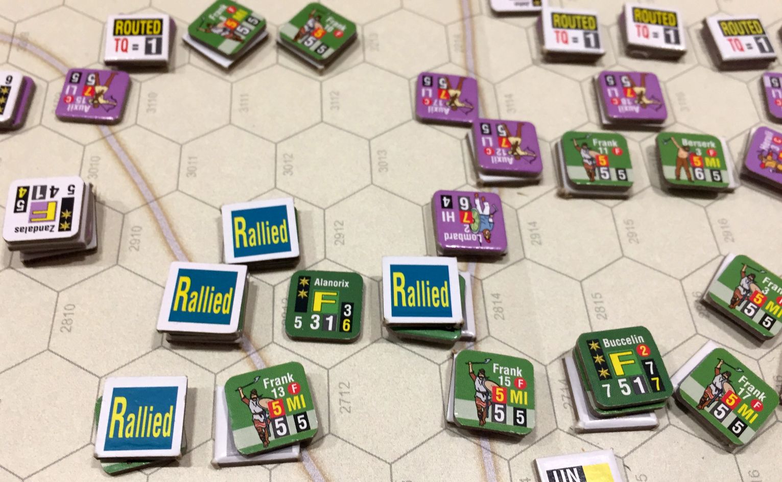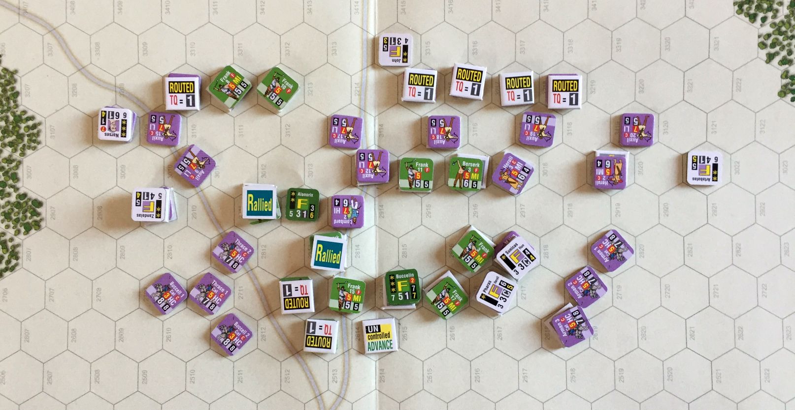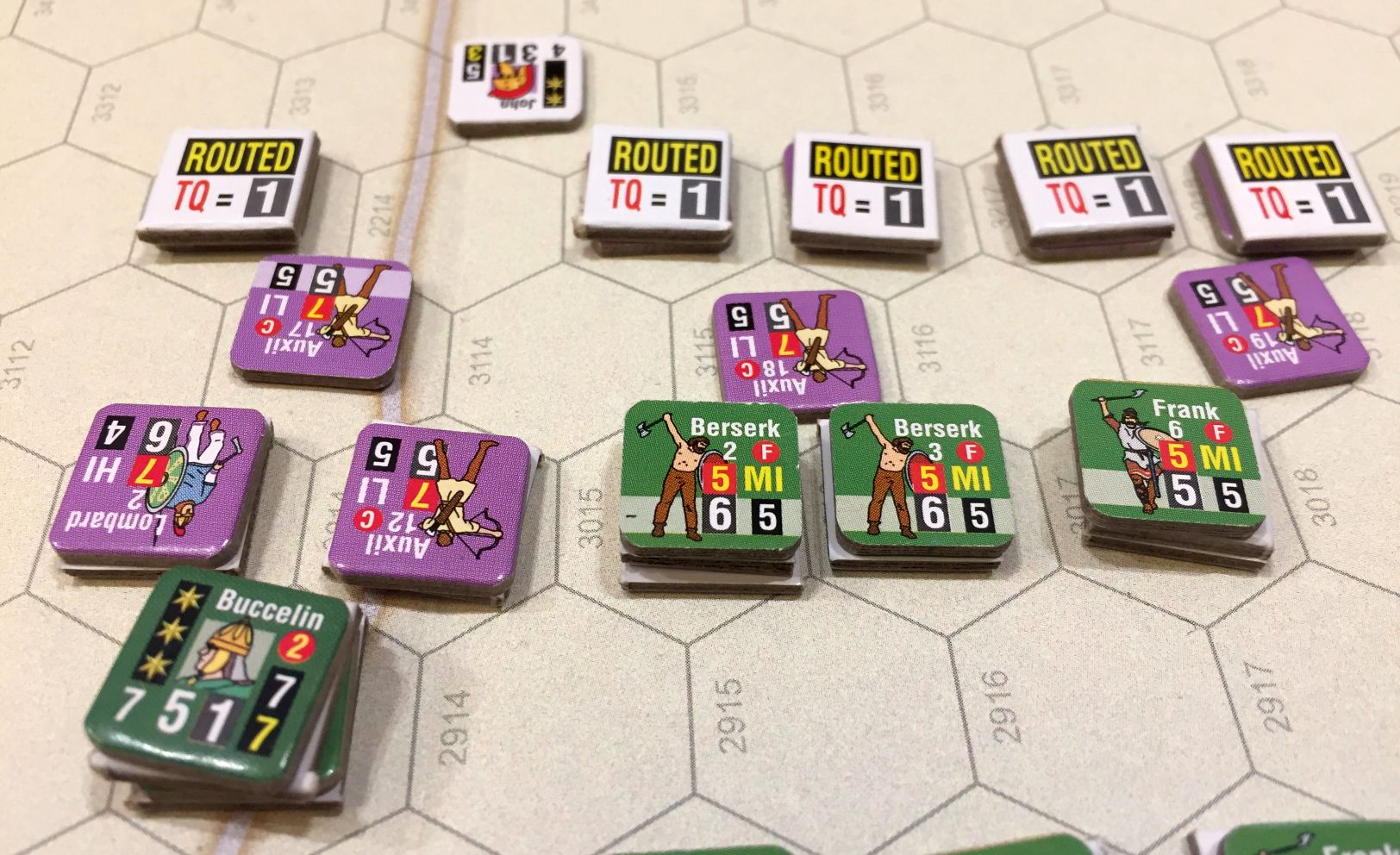 The ancient sources claim that only 8 Romans died while only 5 Franks survived. In my game the disproportion was not so vivid but still barbarians really did not stand a chance. That was a nice solo experience, especially when played with my young sons who love to roll for archery, charge and the clash of shields. Still, definitely not a good scenario for competitive play but a good history lesson.