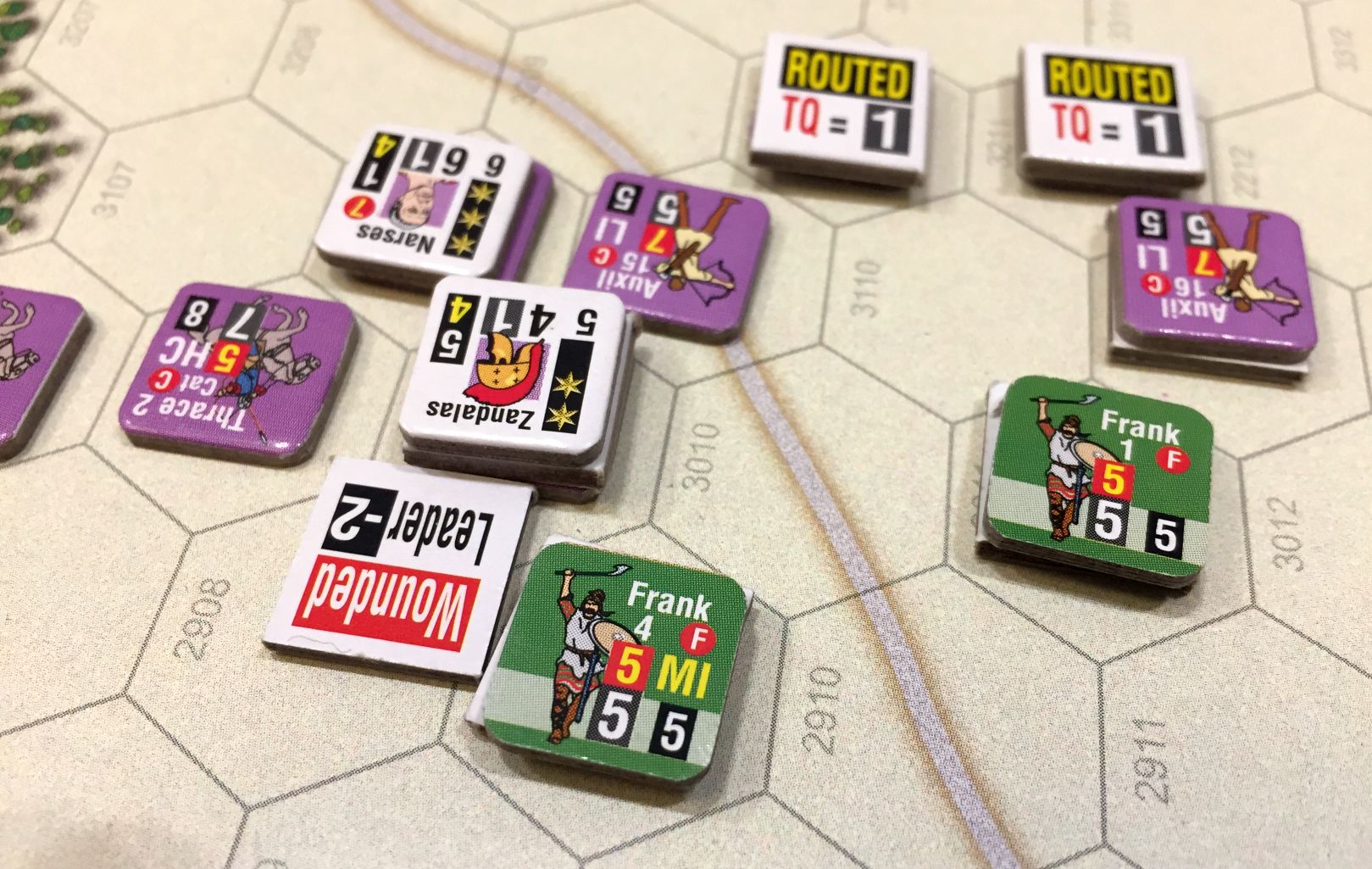 I am continuing my social distancing solitaire plays – this time with Cataphract, one of the Great Battles of History installments. I really like the period described – late Roman and early Byzantine times, with great generals like Attila, Belisarius or Narses playing key roles. The impact of cavalry and introduction of composite bow really changed the battlefield dynamics and that game greatly depicts this. What follows is clash of Byzantine and Frank forces in mid 6th century in Italy.
