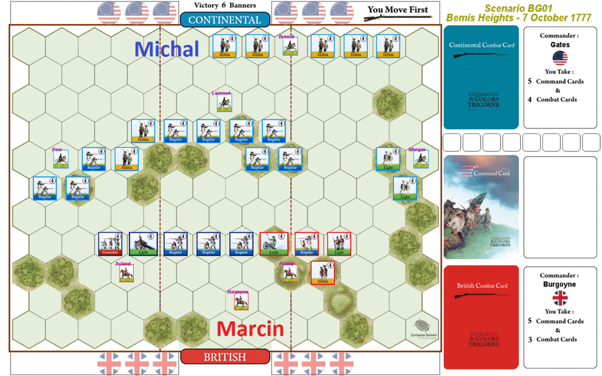 I discovered C&C Tricorne pretty recently, playing Bunker Hill on Independence Day. I am a big fan of Commands & Colors system, and love to explore new titles within the series. What fascinates me, is how Richard Borg is able to reflect particular epoch or war using well known mechanics but still doing a tweak or two to the rules, and significantly changing the game dynamics.
