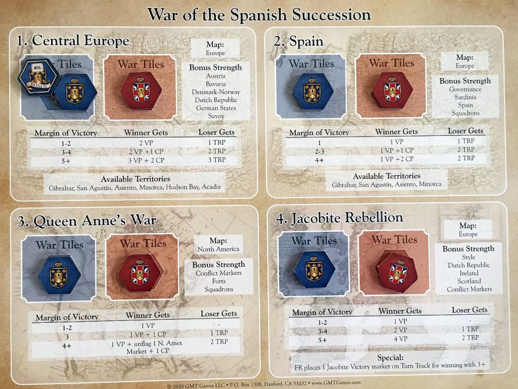 But first, what is Imperial Struggle (IS)? In short, it is a two-player game depicting the 18th-century rivalry between France and Britain. It covers almost 100 years (from 1697 till 1789), touching war, political, economical and diplomacy aspects.