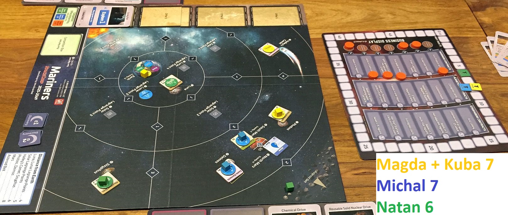 There are some voices that Marineers Era is redundant in Spacecorp. I disagree. Yes, the amount of Victory points to get is much smaller compared to the other Eras; still, this is superb intro to the game when you had a longer pause from the last session. That also worked great with the boys and Magda – and allowed them again to quickly grasp the mechanics and be ready for more complex exploration later on.