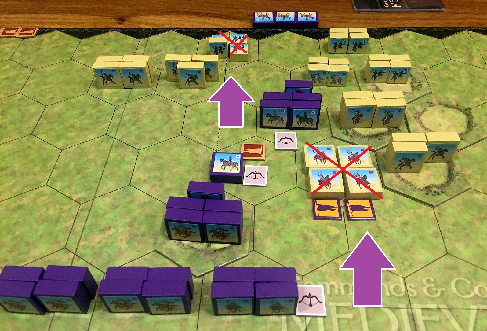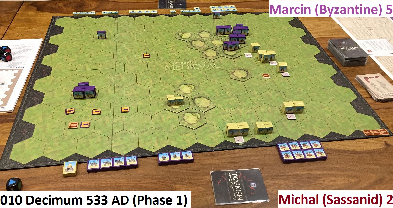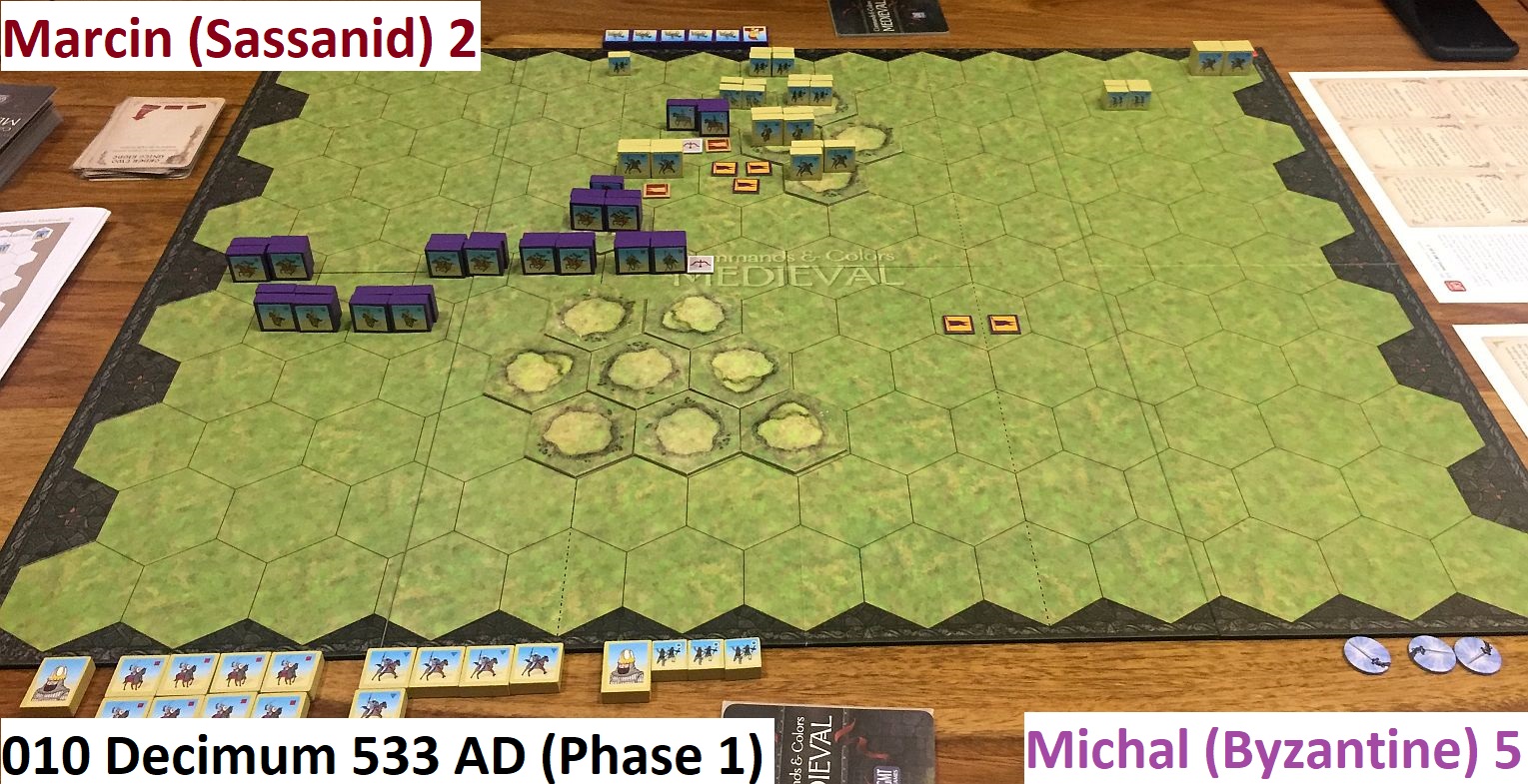 First phase of Decimum is a very confrontational scenario, which easily and quickly escalates in full-scale, close quarters engagement. Due to the positioning of the Sassanid forces (historical set-up) they were quickly dispersed by the Byzantine Cataphracts. But to win the scenario you need five points so after initial successes Romans has to decide where to hit next. Marcin chosen to wipe out the Persian infantry (right wing) and I moved to the center (to get cavalry). Both choices proved to be correct!