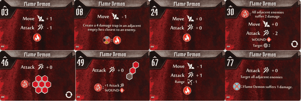 Still, even after 40 scenarios, Flames can surprise you with their great retaliate, shield and unpredictable initiative (see Gloomhaven – #43 Drake’s Nest – 2nd attempt played on monster level 7). But the satisfaction you get from properly approaching those creatures and vanquishing them is great and long lasting.