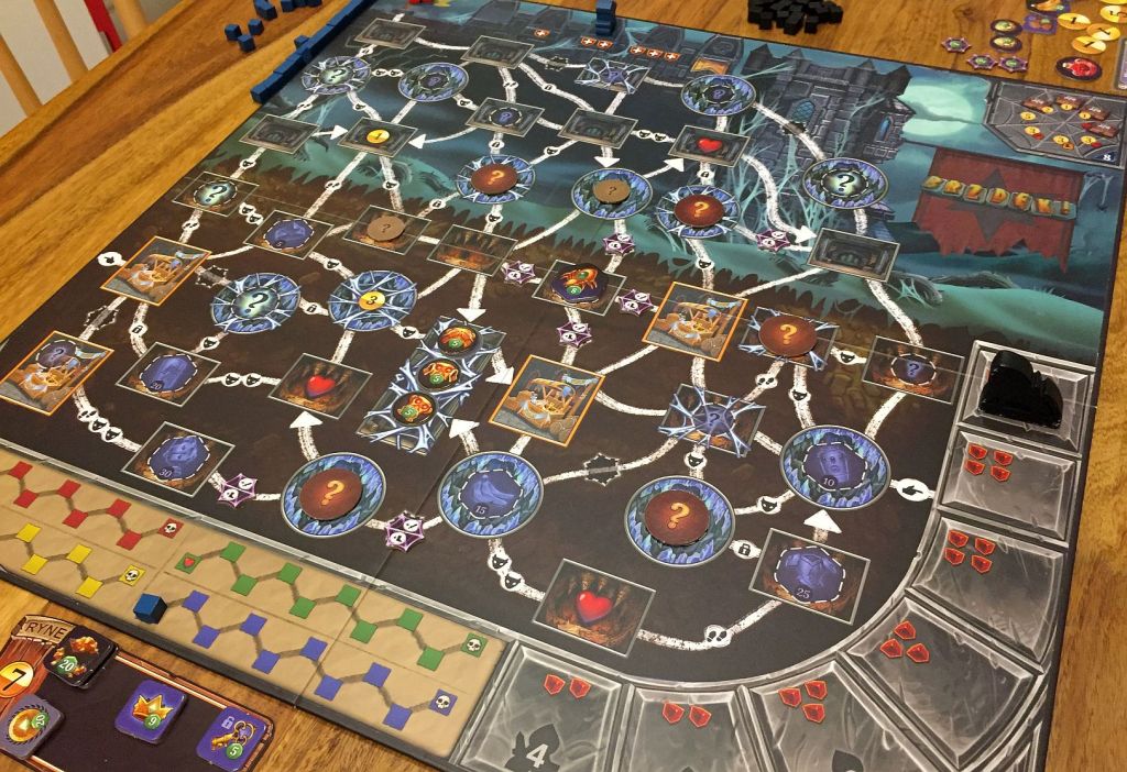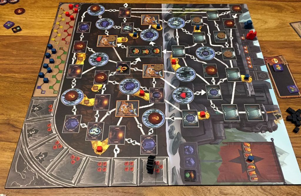 We started from the Silk expansion, playing against Spider Queen herself! Our 5 and 7 years old boys simply loved the theme and suspense of crawling through the dungeons full of spider web. Both teams invested in backpacks as carrying more than one artifact seems to be one of the best ideas to get the points.