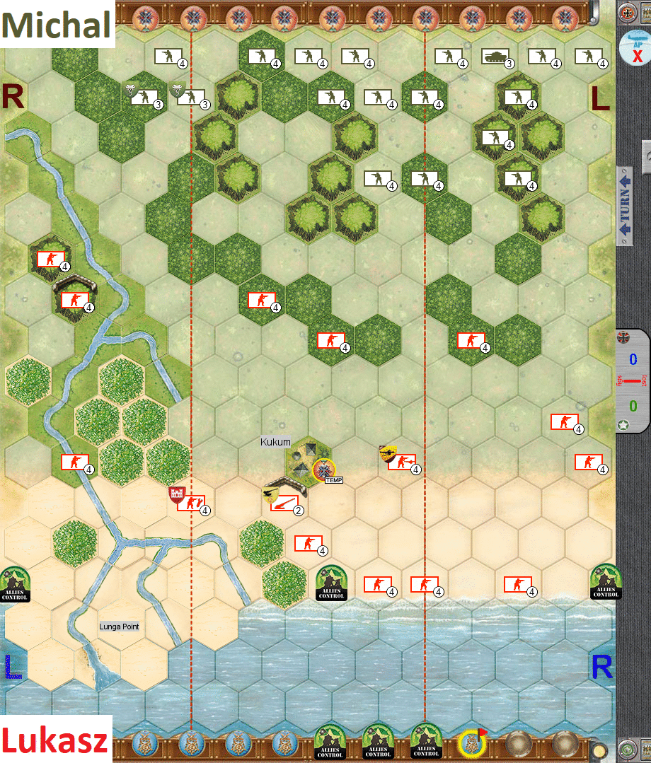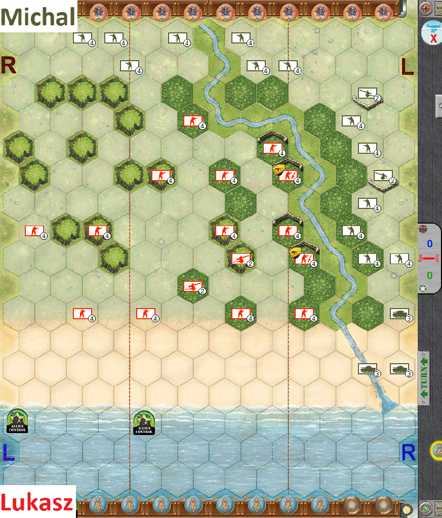 - Thus I am slightly changing the attack plan, initiating approach on flanks – with special focus on Japan left / US right flank. That proves to be pretty successful as one of my tanks even reaches the beach!