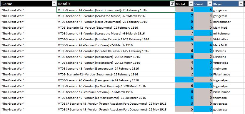 Similarly, in March 2020, we initiated The Great War Fifth tournament (more details about TGW MT05 here). Unlike the Open Tournaments, the number of players is usually limited to 10 (and has to be even for a correct games match-up). Also, the chosen scenarios are usually concentrating around some historical event, war, epoch or theater of operations. In case of MT05 it was the famous battle of Verdun.