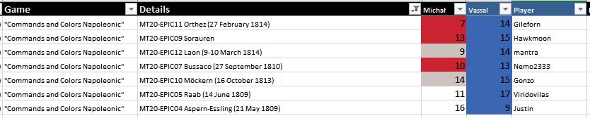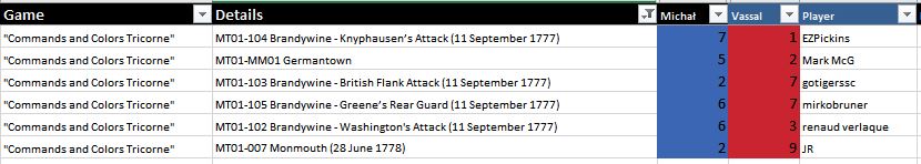 As for my performance, that was not bad for the newcomer to the title. The decent results of 5 games were however overshadowed by two disasters: 2-7 with Gotigerssc and 2-9 with J.R. Tracy. Well, learning can be painful sometimes but I still recon this game as a great title. So, if you fancy Commands Colors Tricorne, do not hesitate and head to CCT web page.