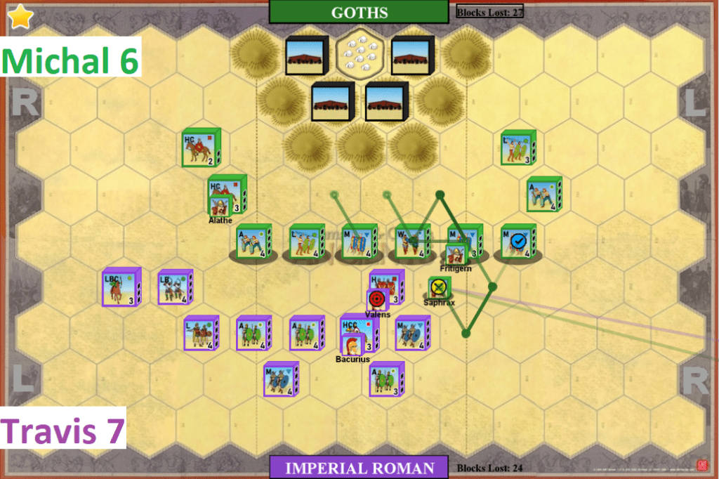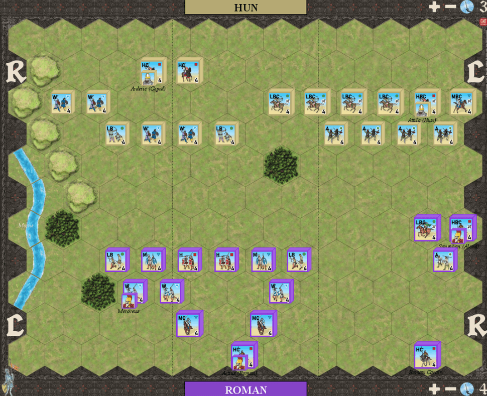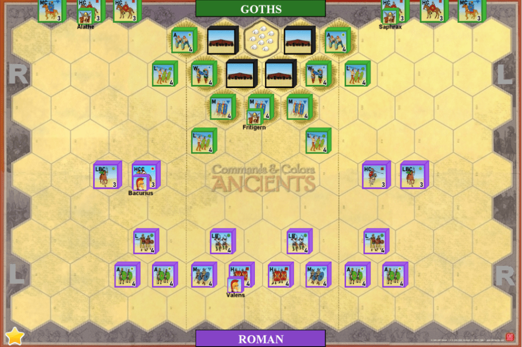 We have here scenarios only from before the Western Roman Empire fall. Still, they were published in two games. Grand battles of Adrianople, Argentoratum or Salices in Ancients while Utus River and Catalunian Fields in Medieval. Playing the tournament requires some flexibility, as you have distinct set of rules between CCA and CCM, but the historical theme of Barbarians vs Empire holds strong.