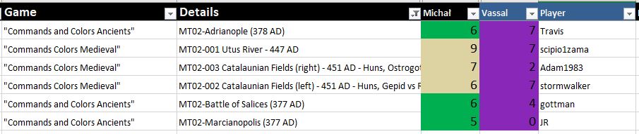 We have just finished the preliminary round of 6 games and will be playing play-offs soon. And yes, I have progressed to the heats:) My opponent will be Gonzo, very experienced and good player so I hope for a couple of great games – we will play EPIC Argentoratum! So, if you fancy Commands Colors Medieval, do not hesitate and head to CCM web page.