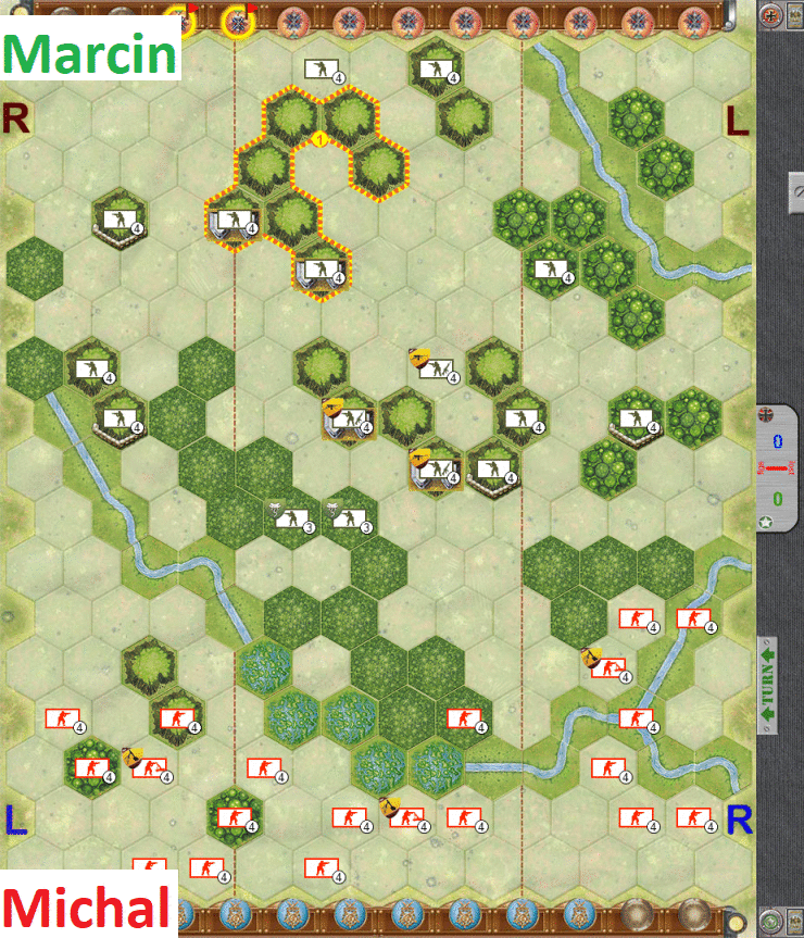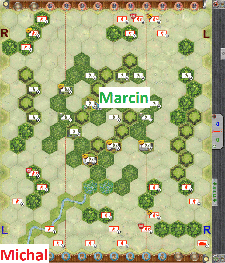 - It is time for last push – I fiercely assault on my left flank, also moving the top-board units. My troops have some successes but the Marcin’s advantage, built in first part of the game is enough to easily win.