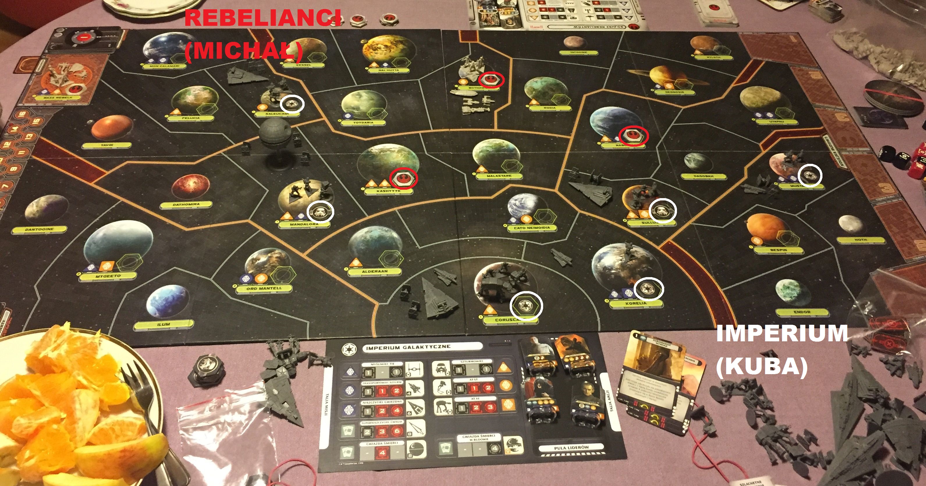 First things first. We rolled for sides and I took command of the rebel forces – controlling 3 systems at the beginning – while Kuba was in charge of Empire – having support in 6 sectors: